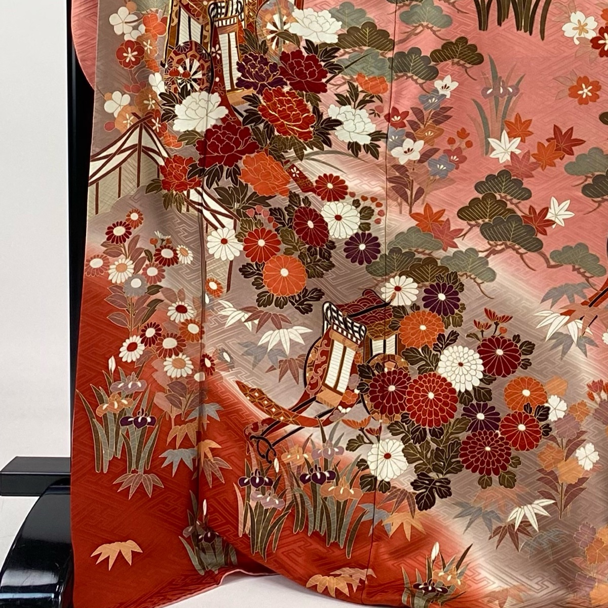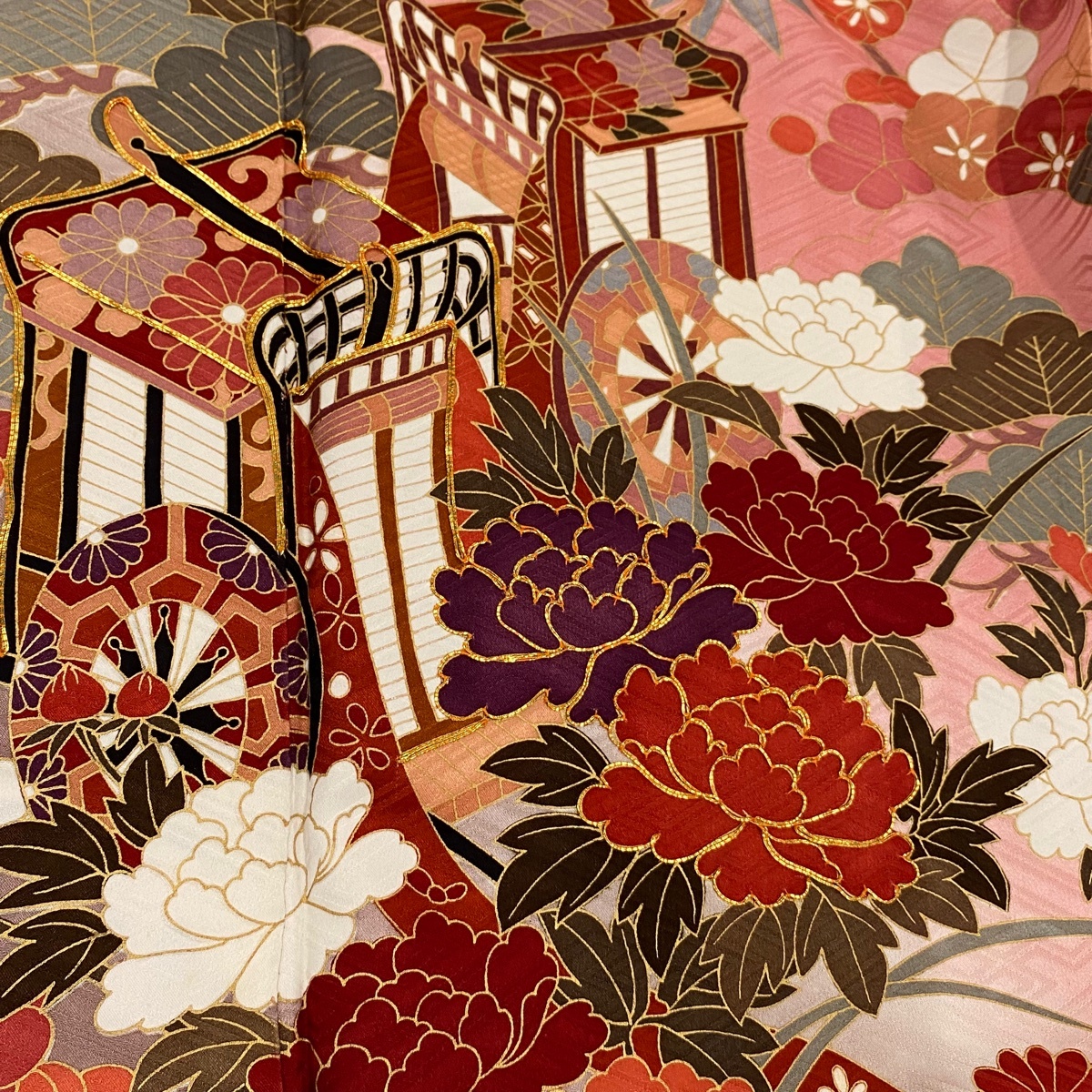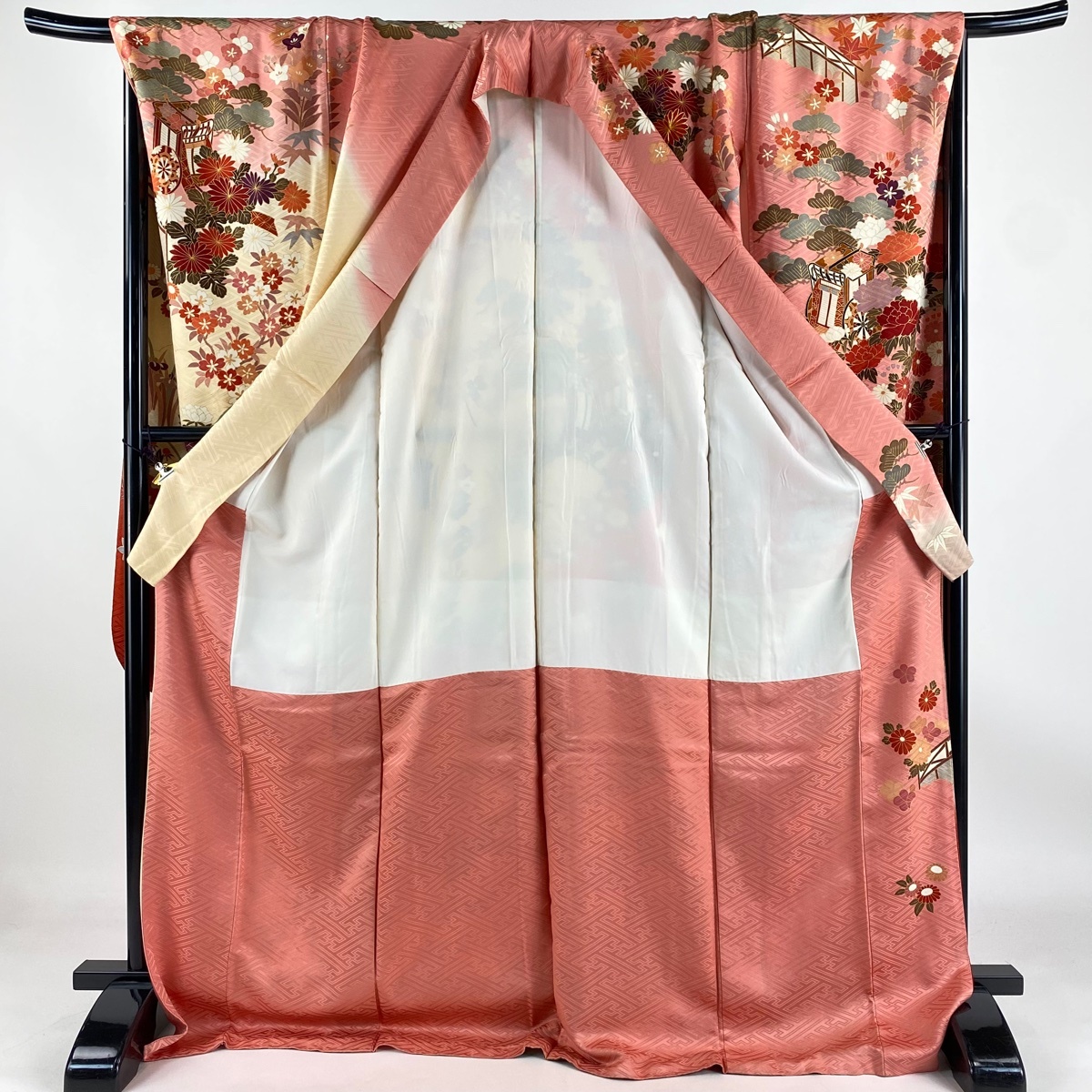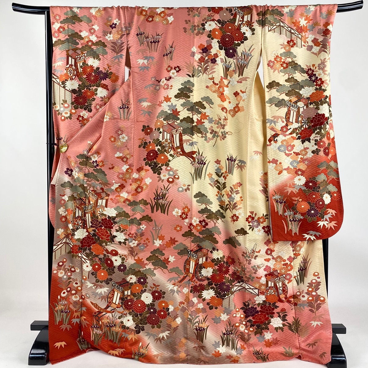 | 振袖 秀品 御所車 松竹梅 金糸 金彩 ピンク 袷 身丈175.5 裄丈70.5 L 正絹 【中古】 |