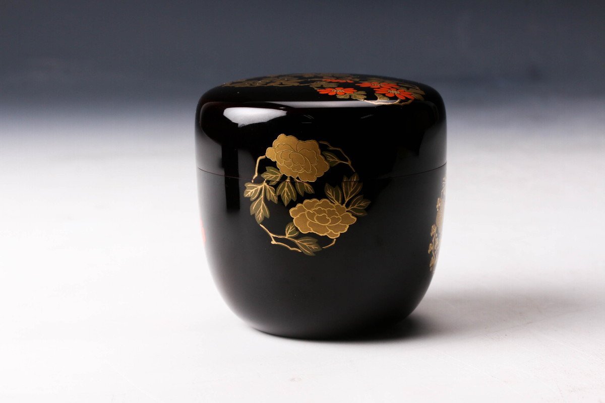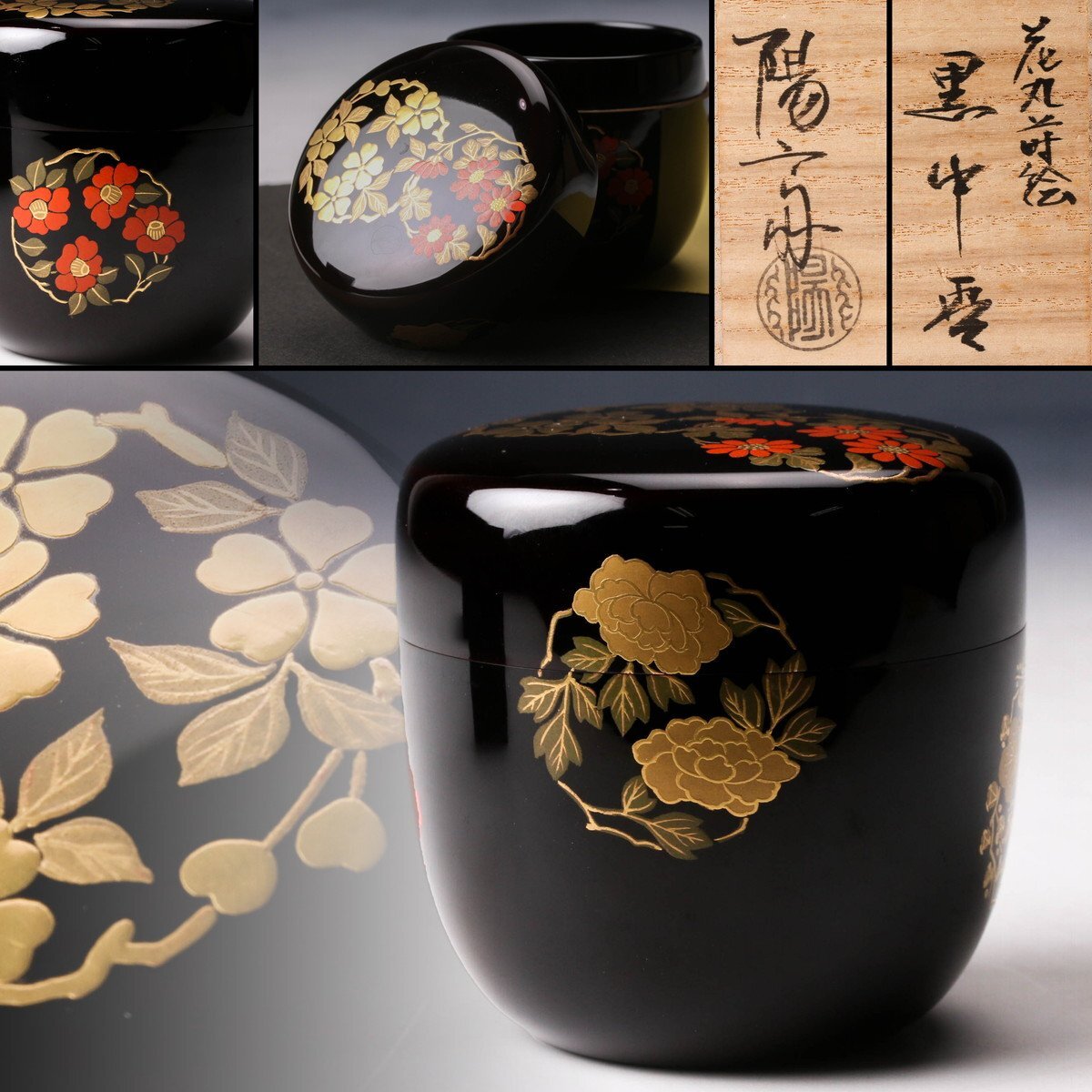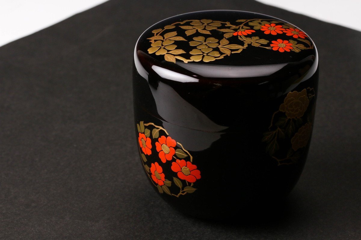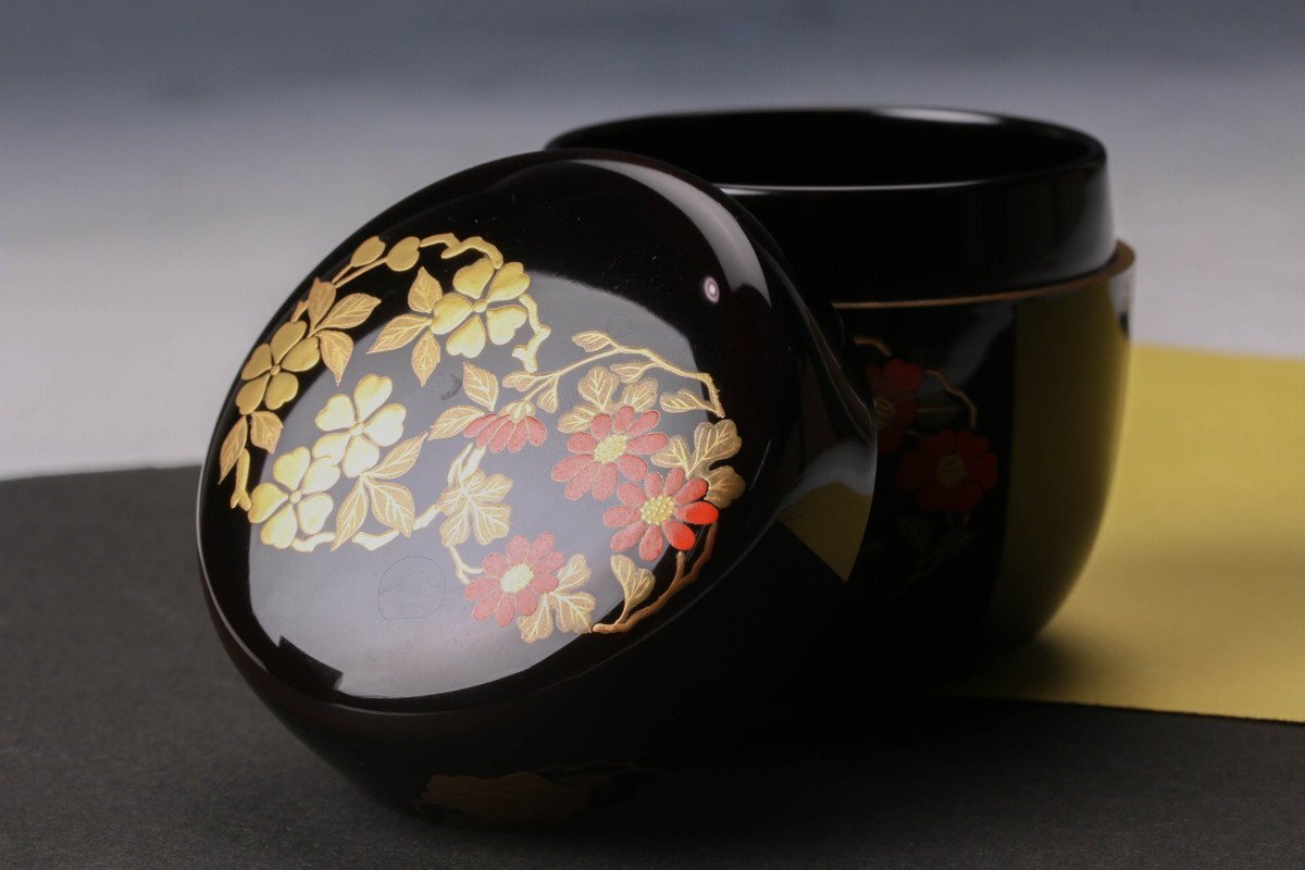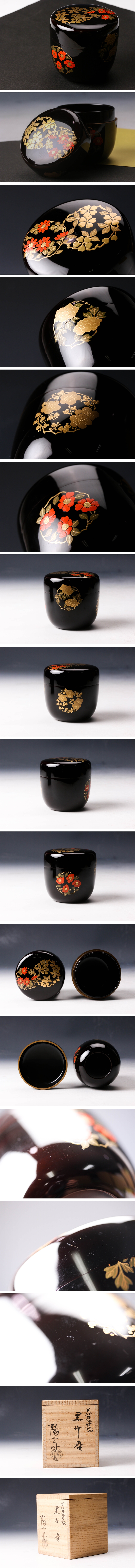 【佳香】岡本陽斎 花丸蒔絵中棗 共箱 茶道具 本物保証
