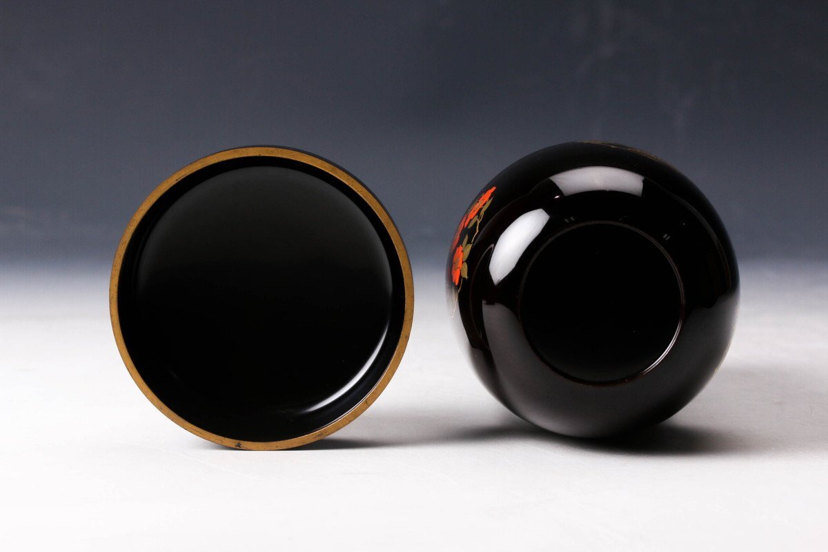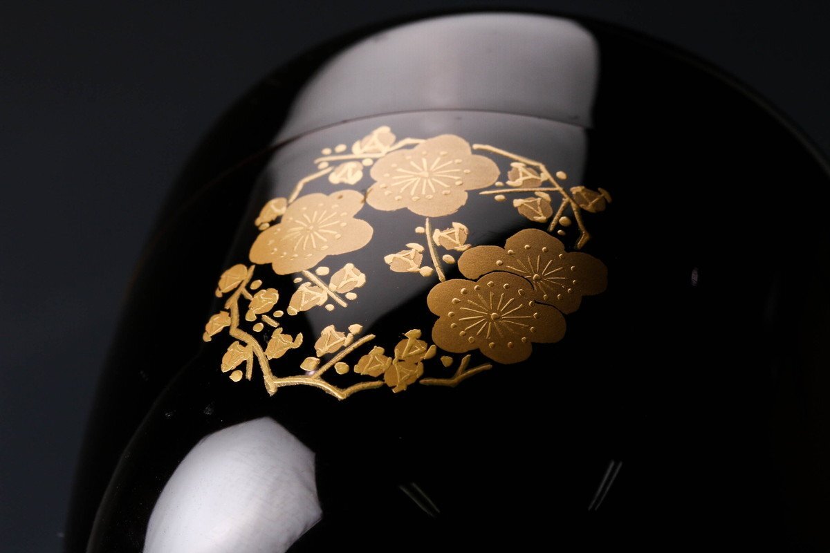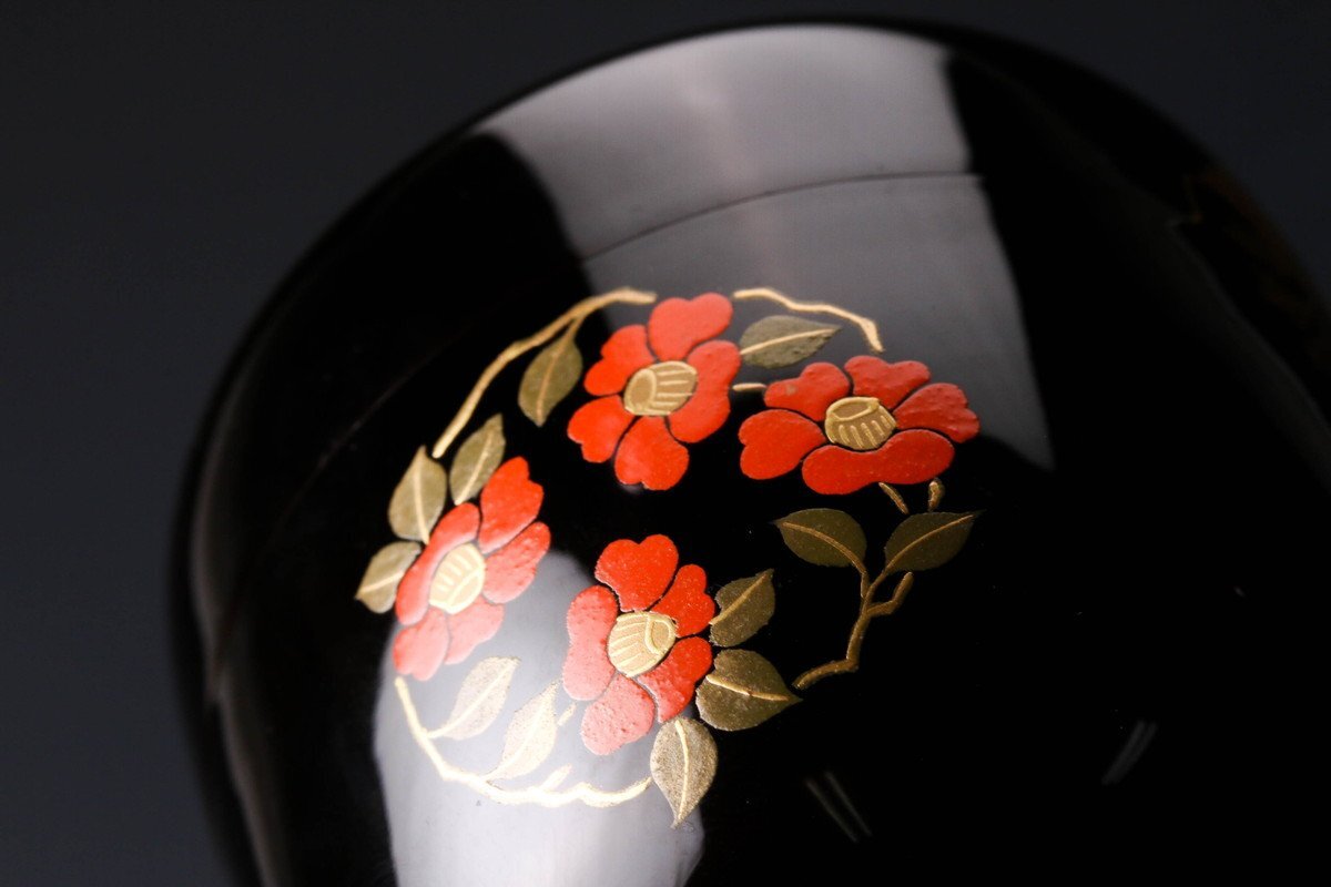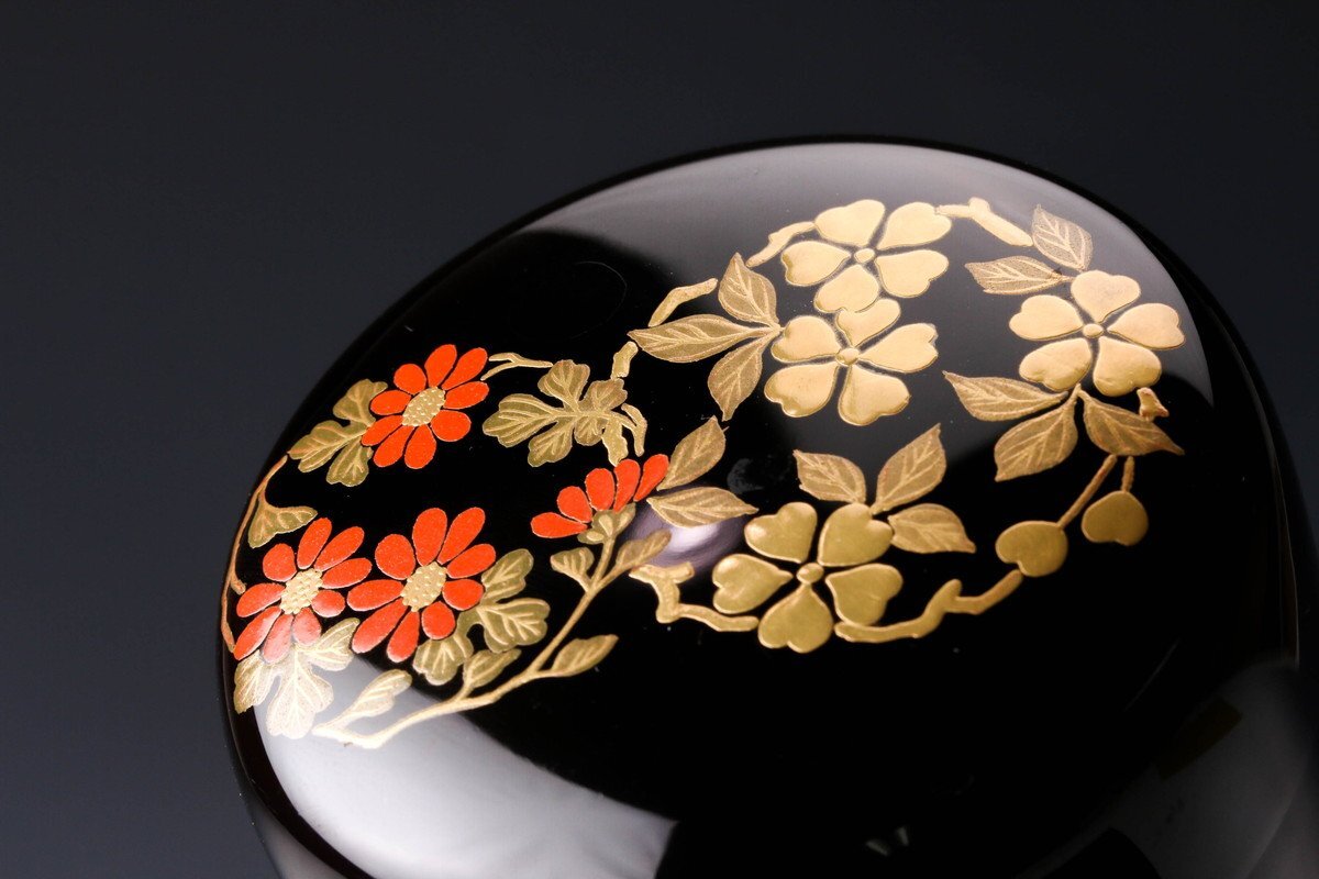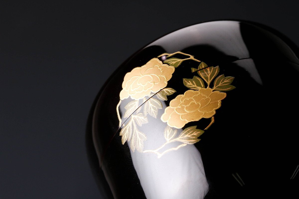 【佳香】岡本陽斎 花丸蒔絵中棗 共箱 茶道具 本物保証