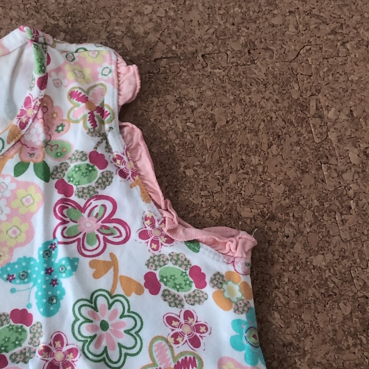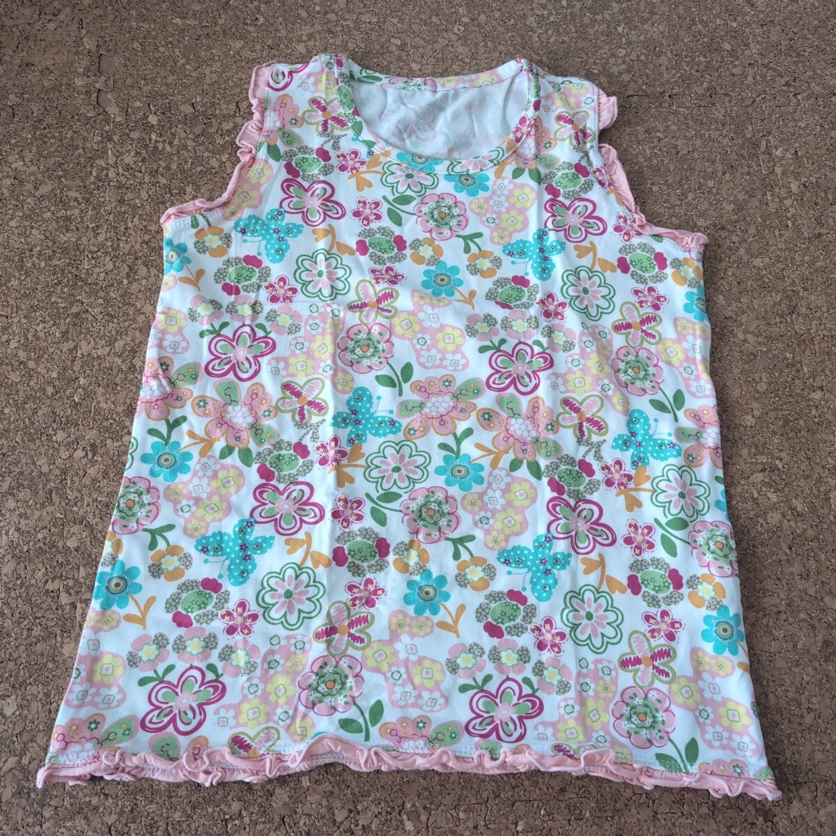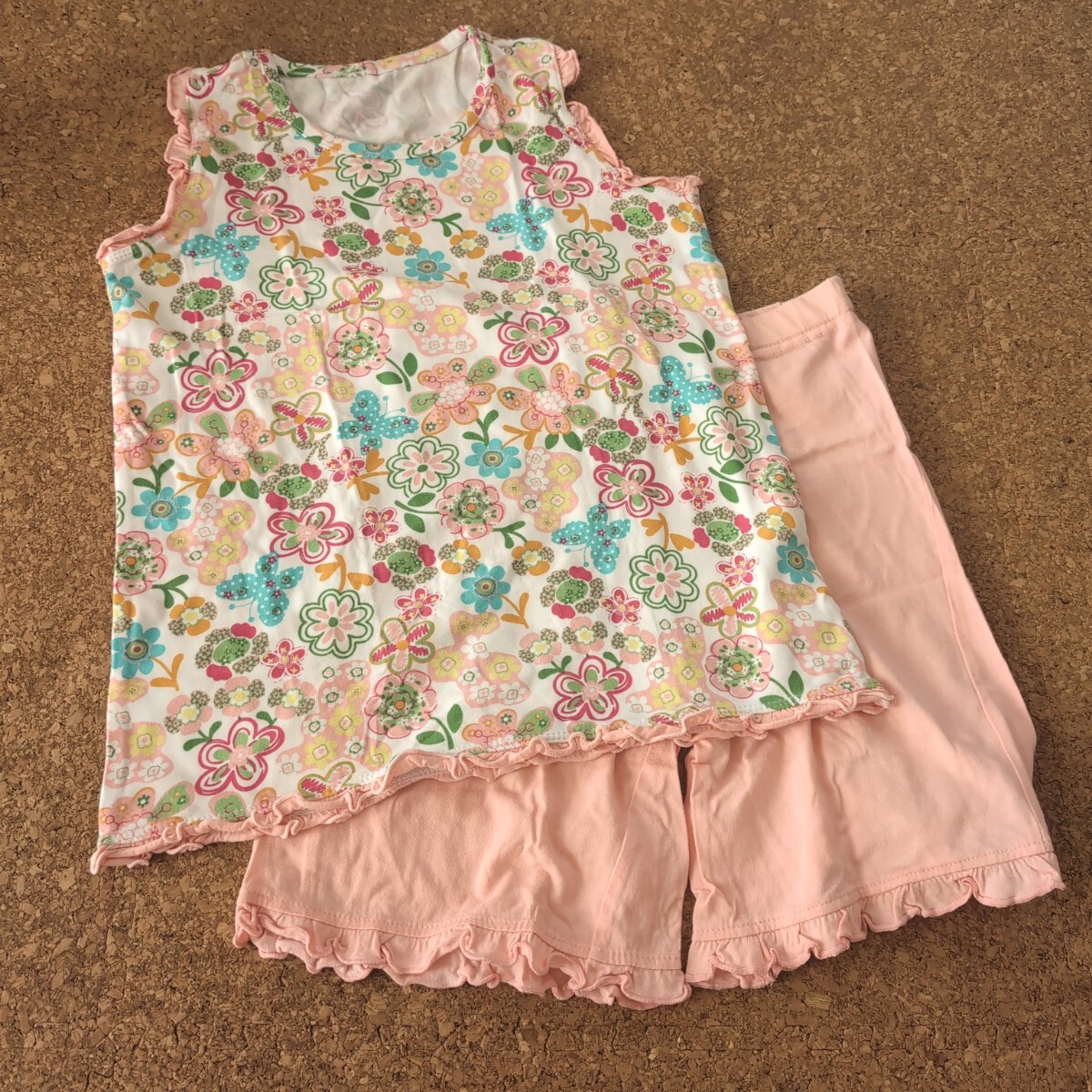 カラフルな花柄のタンクトップとショートパンツのセット。