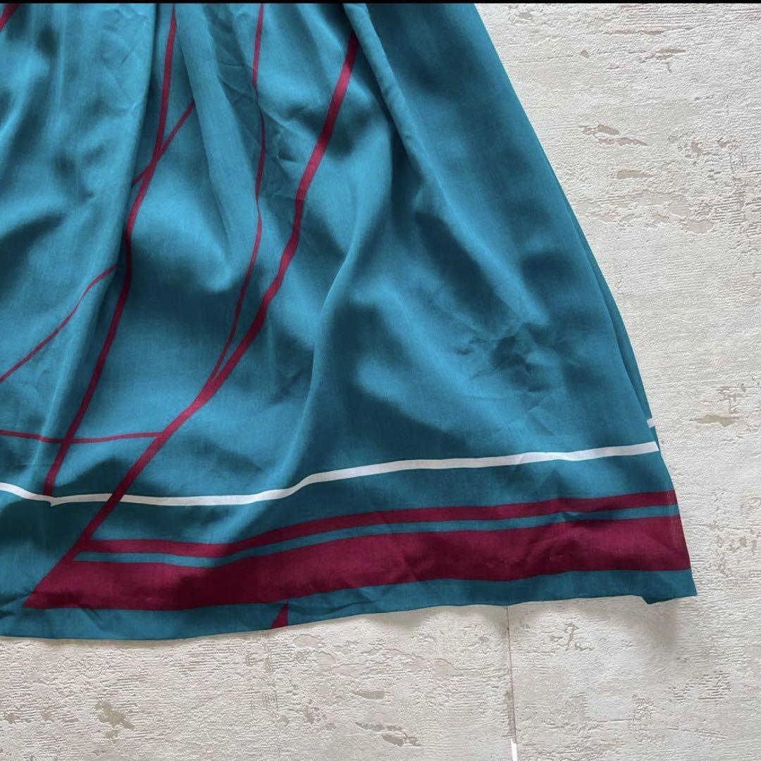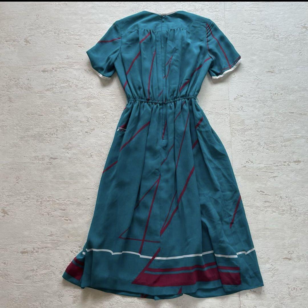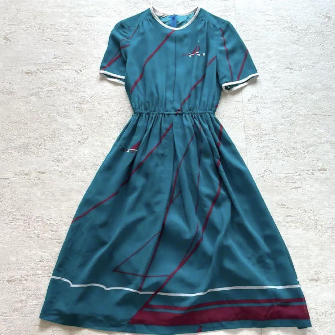 昭和レトロ ワンピース 半袖 マリン柄 ヨット柄 グリーン系 ヴィンテージ n1