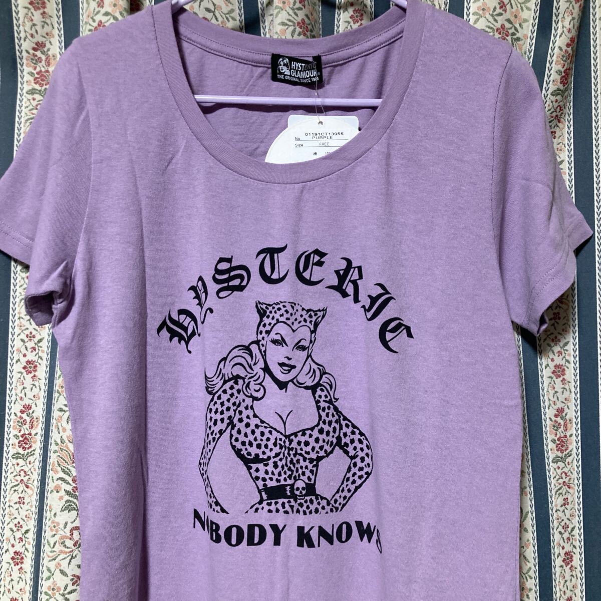 どこかレトロな雰囲気のあるガールイラストがポイントのTシャツ。ライラックカラーが綺麗です。