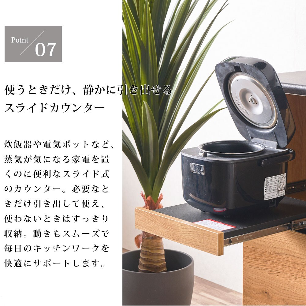 特  徴機能性と収納力を兼ね備えた日本製のキッチンカウンター。