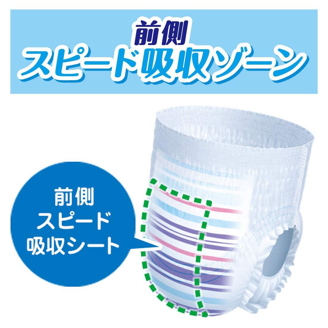 【うつぶせ寝に強い】おむつ前側にすばやく吸収・拡散する“前側スピード吸収シート"を採用しました。通常紙おむつ(パンツL~BIG)と比較して、シートの厚みが約3倍なっているので前側からのモレに強い。
