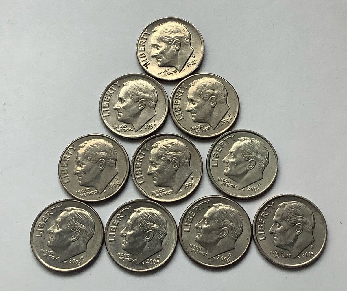 【商品詳細】アメリカ 10セント硬貨 1982年 1990年 1994年〜1996年 2001年 2003年 2005年〜2006年 2015年 年号違い各1枚 10枚ずつ まとめて