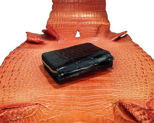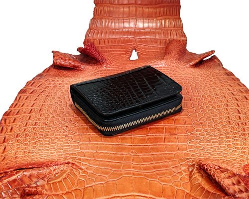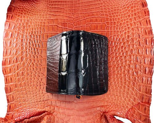 | ヘンローン社製 クロコスキン 世界で最高のクロコダイルの染色技術をもった会社です。 他メーカーのスキンとの差は、歴然としており、 イタリア・フランス・アメリカ・日本等に輸出している クロコダイルスキンのトップメーカーです。 この製品は、ヘンローン社のクロコスキンを使用して縫製されたものです。 |