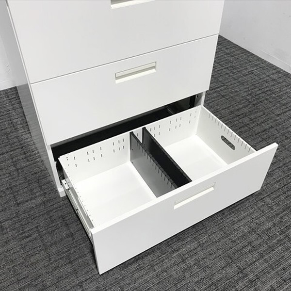 ■取り扱い番号 CL-869814B ■仕様 メーカー : オカムラ 製品名 : SA-Duoline 色素材 : ネオホワイト 外寸 : 幅800mm 奥行き450mm 高さ920mm ランク : Bランク ■特徴 ベース付 書類やファイルはもちろん、形や大きさが一定ではないものの収納にも便利です。A4ファイルボックスを横に2列、計8個収納できるので、効率的に収納できます。 |