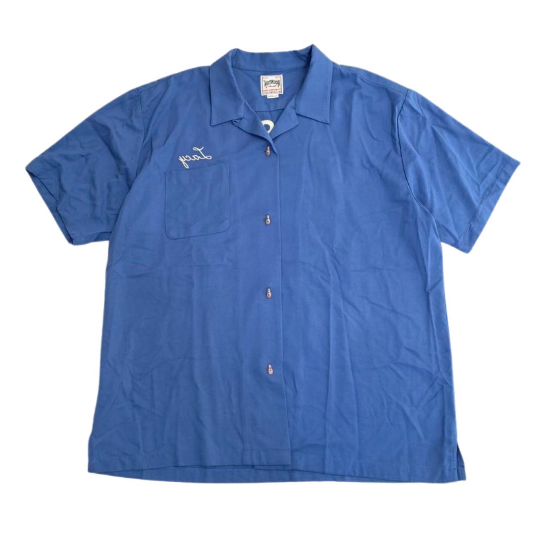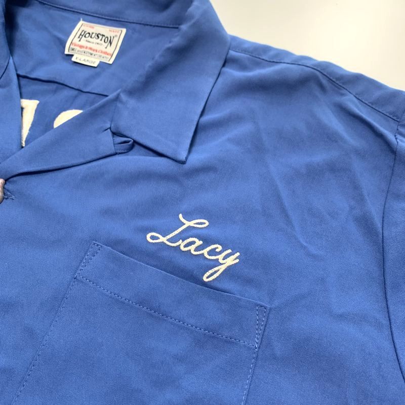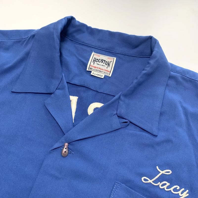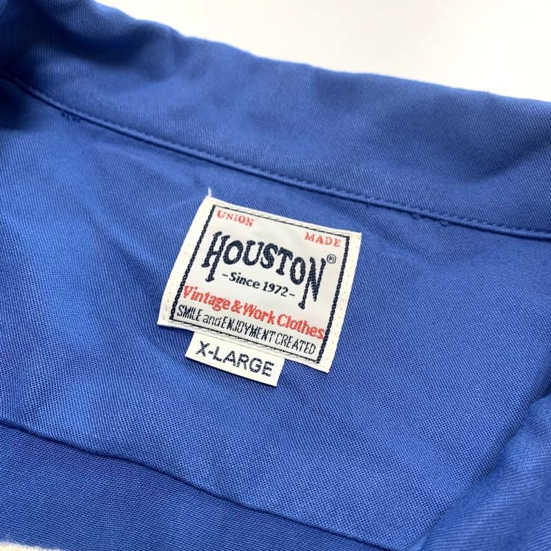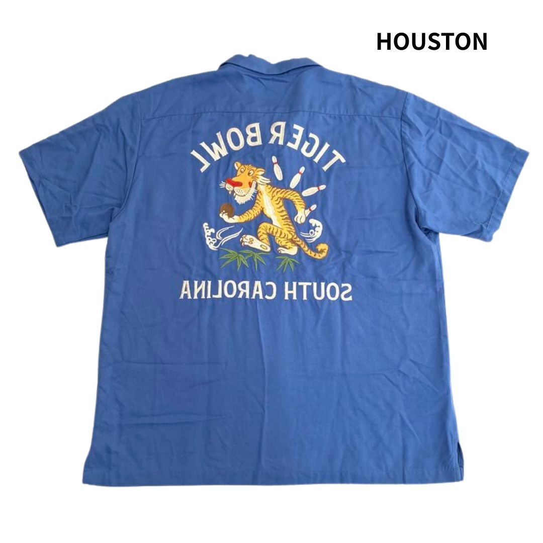 【美品】HOUSTON ヒューストン 41224 BOWLING SHIRT (TIGER BOWL) ボウリングシャツ タイガー 虎 刺繍 ブルー XL/オープンカラー シャツ