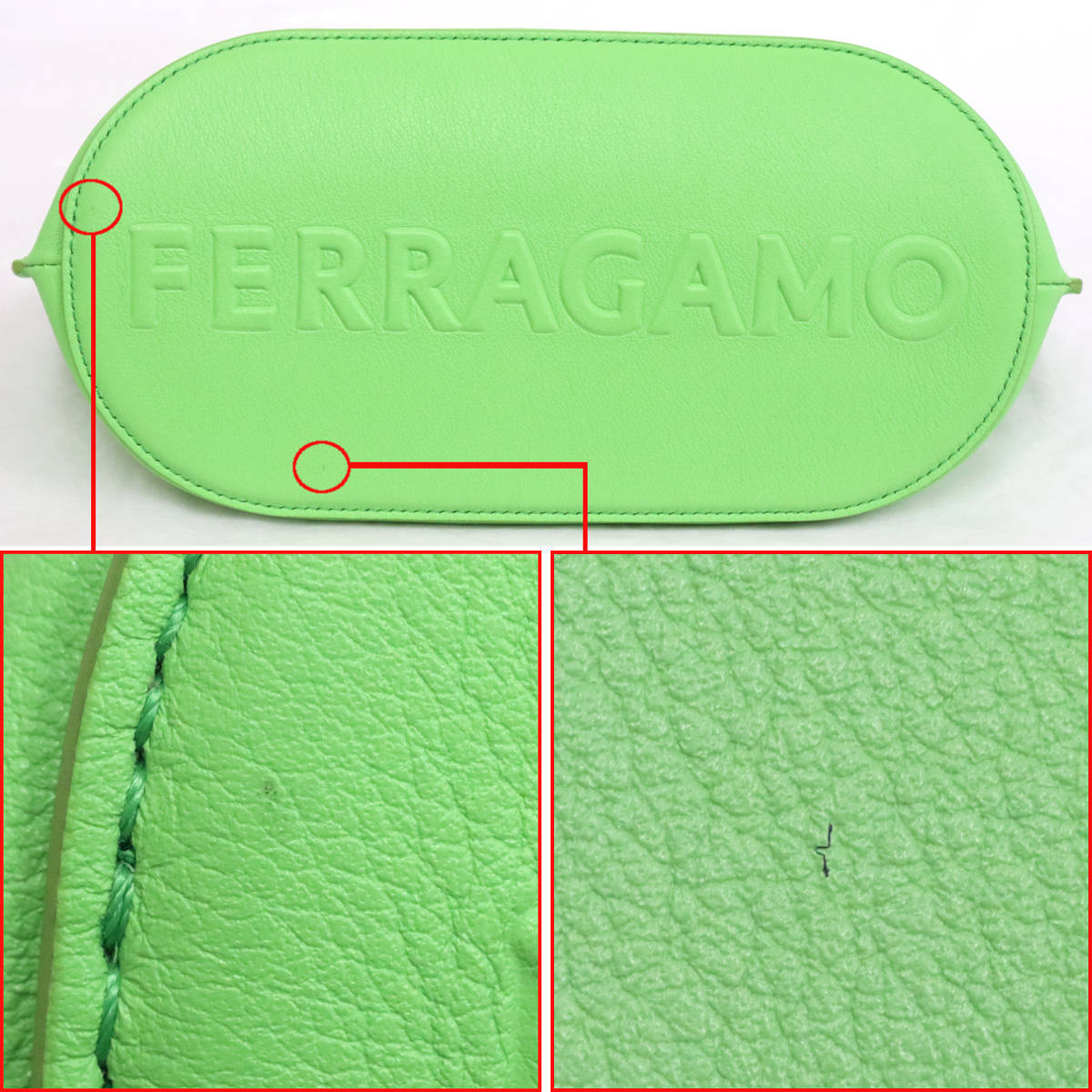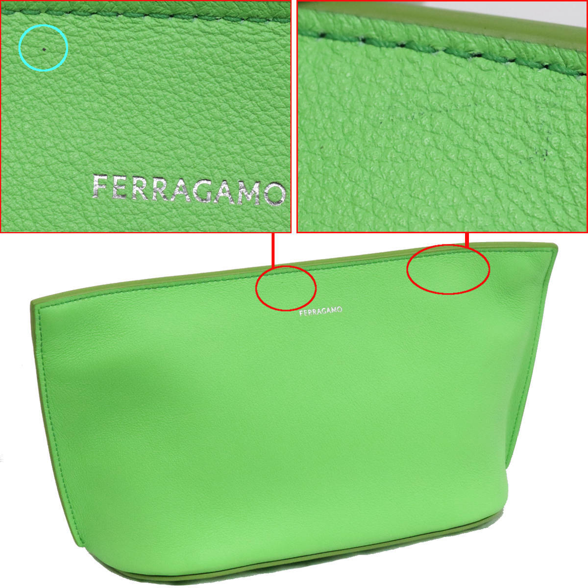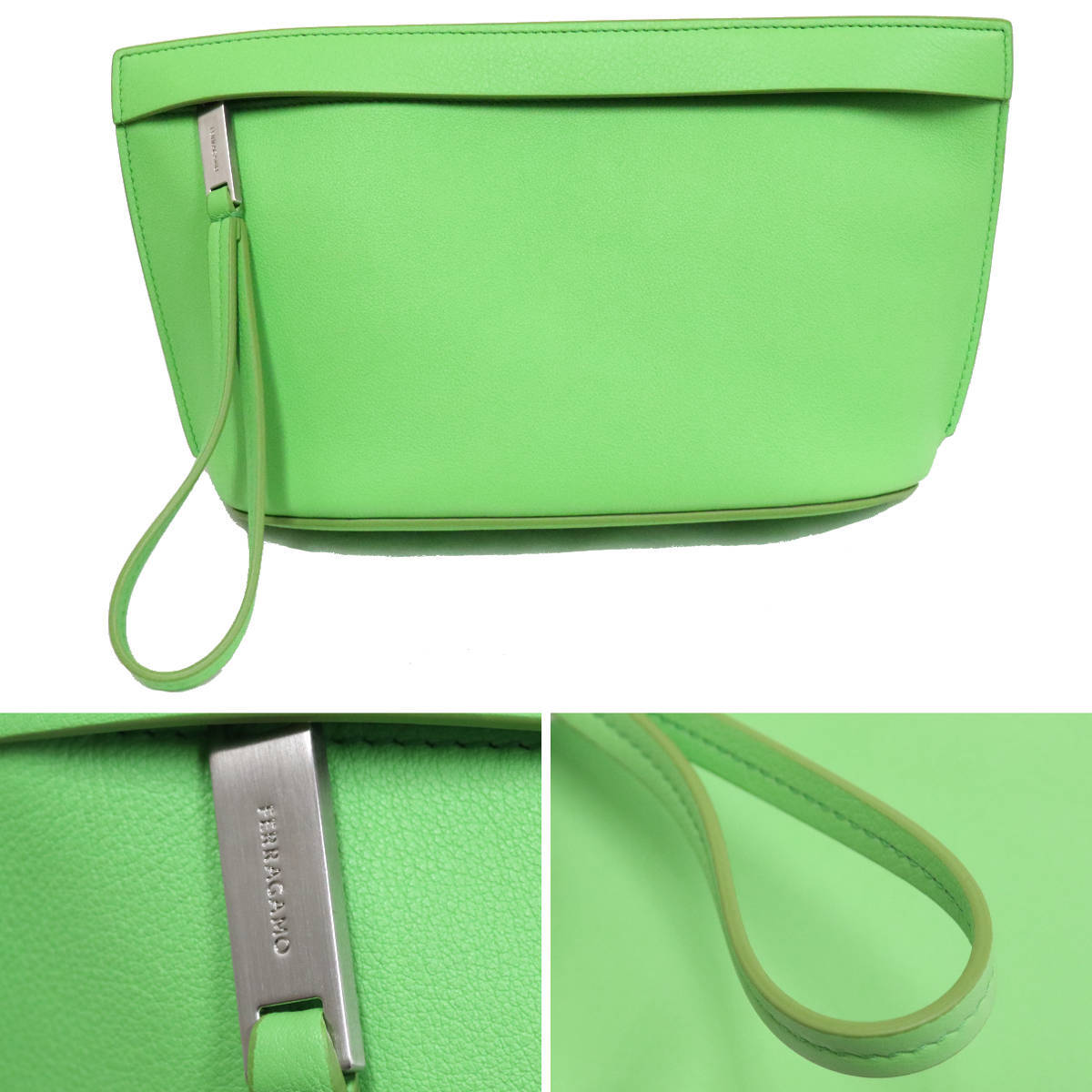 フェラガモのクラッチバッグ(AU-24 1390)の中古品です。 ライトグリーンカラーのおしゃれなお品物です。 デジタルカメラで撮影しておりますが、ご使用のモニターによってお色味が異なります。 表面に部分的に僅かな汚れ、底部に製造工程でと思われますが、繊維の混入があります。 内側は目立つ傷や汚れはありません。