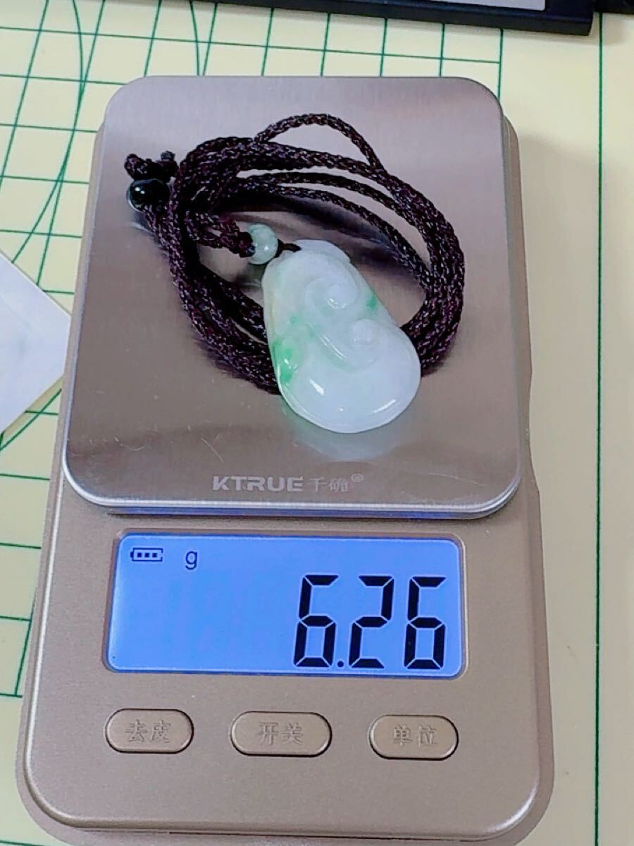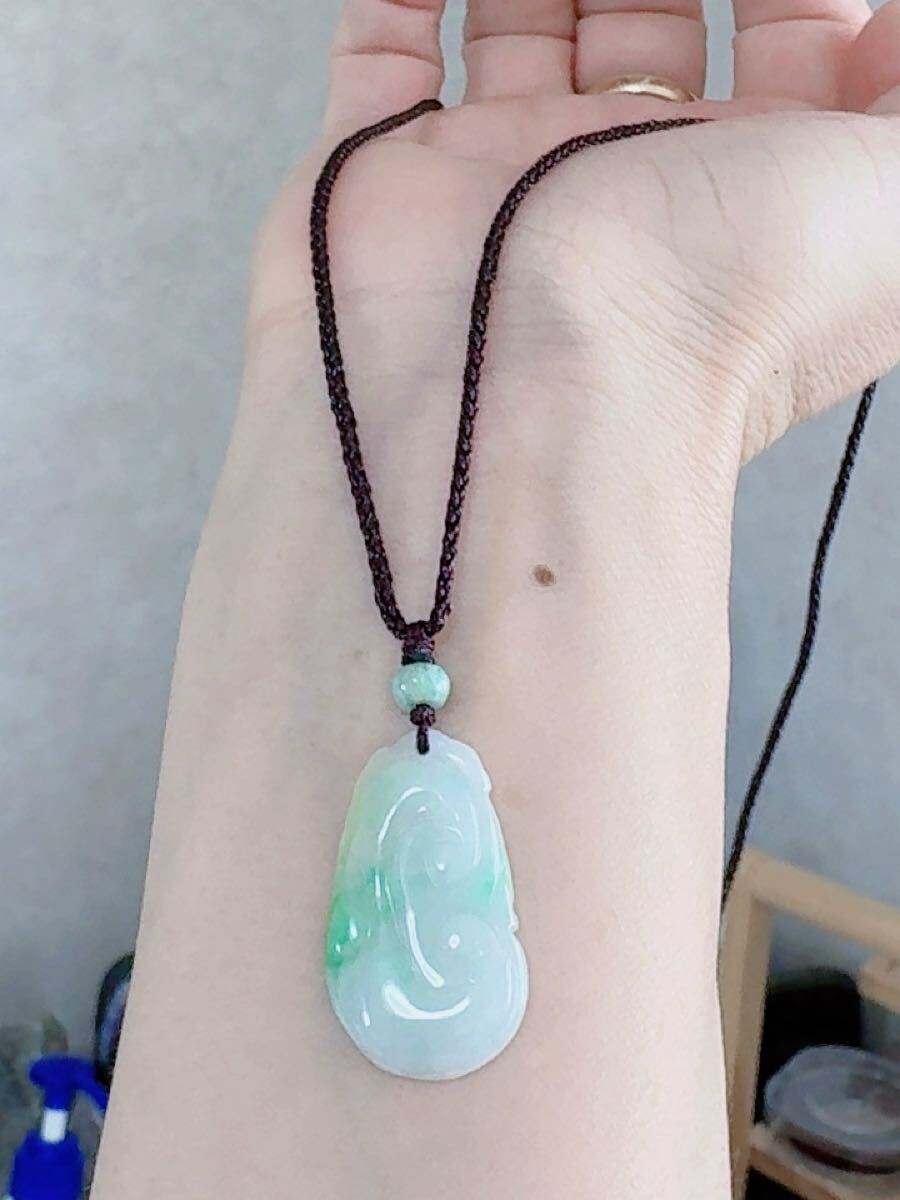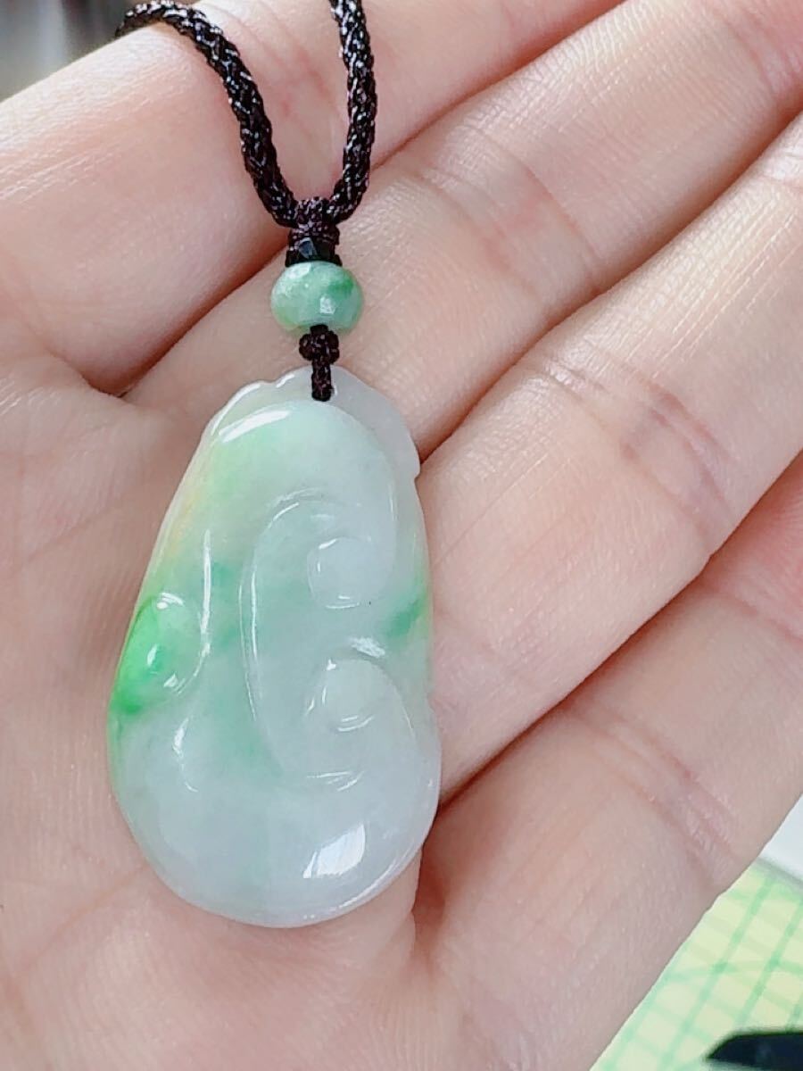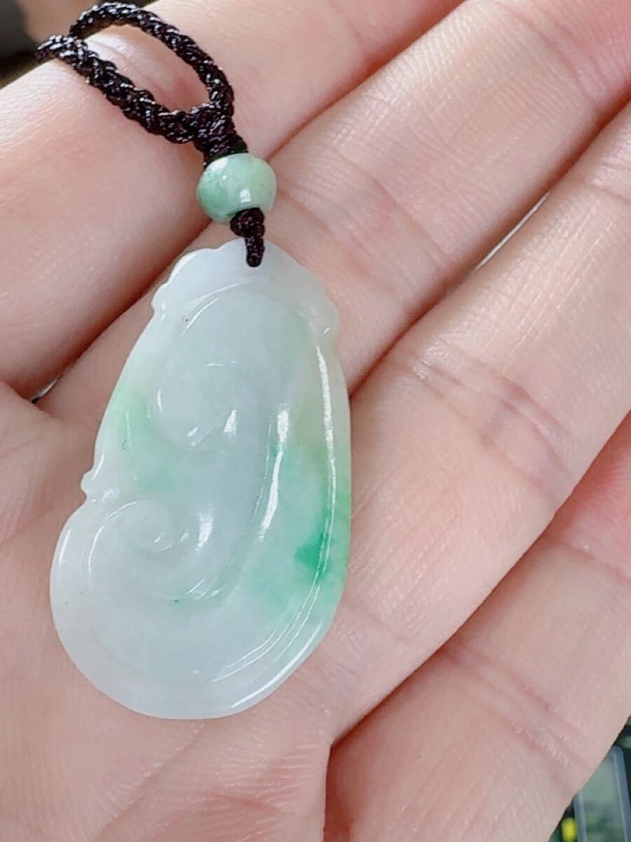 R2-0206天然本翡翠 《本物保証》 一点緑翡翠 「如意」ペンダント 一点物 魔除け 昇進 成功 風水 金運 財運 幸運 幸福 縁起 パワーストーン
