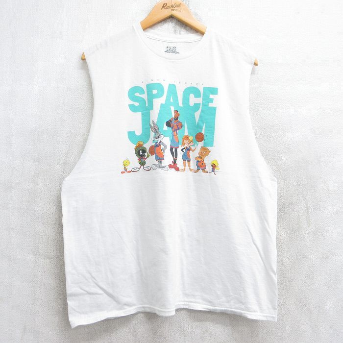 【商品名】 XL★古着 ノースリーブ Tシャツ メンズ 映画 スペースジャム ルーニーテューンズ トゥイーティー バッグスバニー コットン クルーネック 白