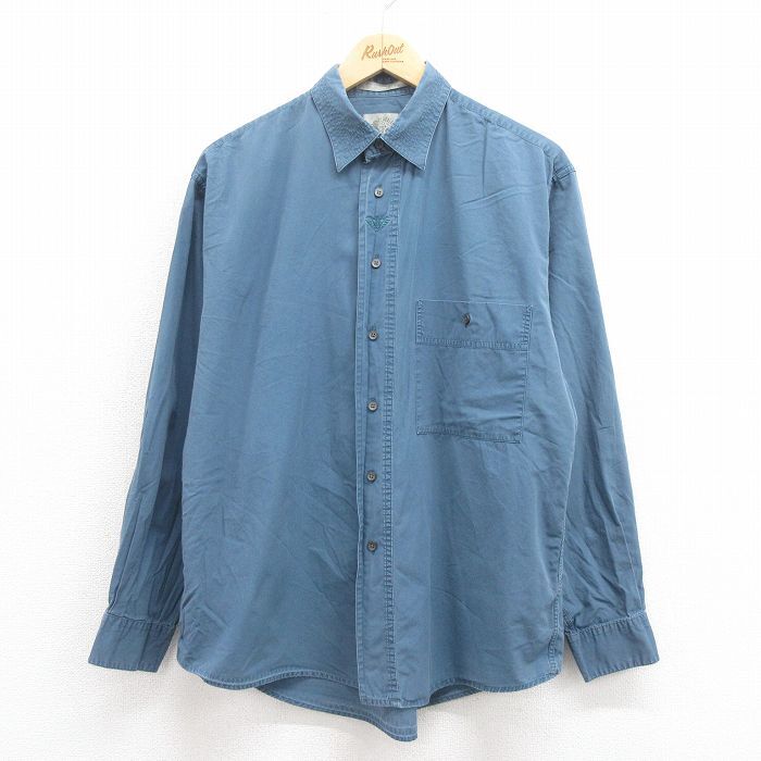 【商品名】 L★古着 ドッカーズ 長袖 ブランド シャツ メンズ 90年代 90s ワンポイントロゴ コットン 紺