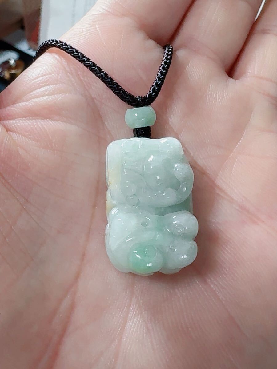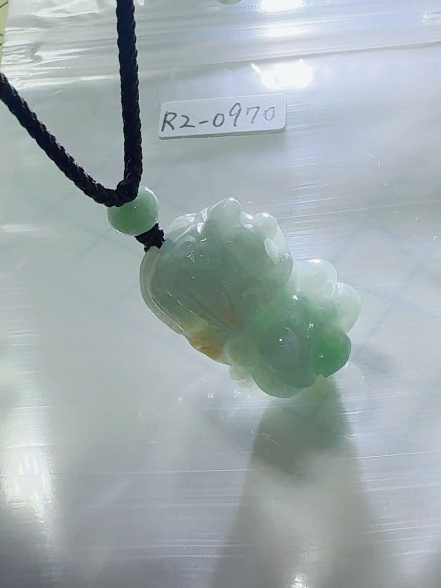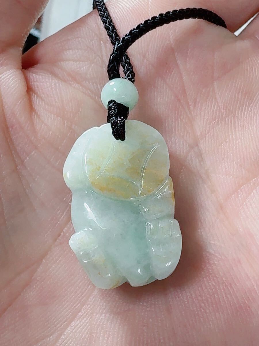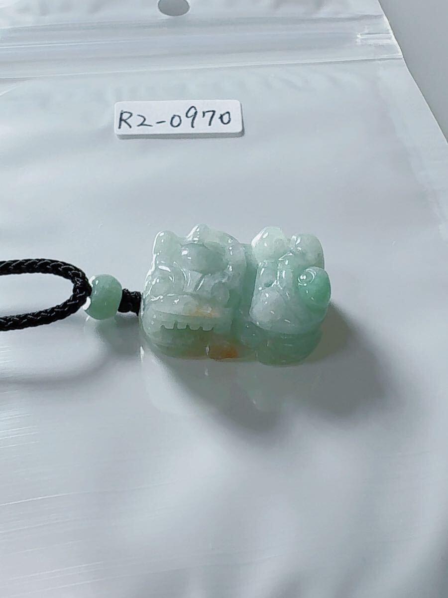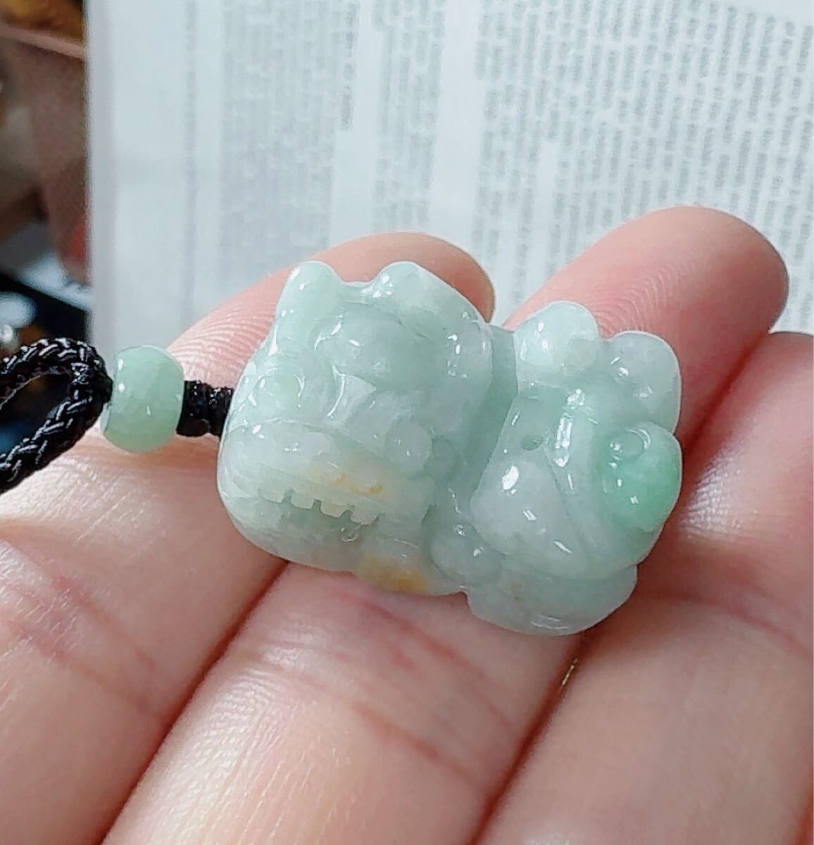R2-0970天然本翡翠 《本物保証》 緑黄翡翠 貔貅ペンダント 一点物 魔除け 昇進 成功 風水 金運 財運 幸運 幸福 縁起 パワーストーン