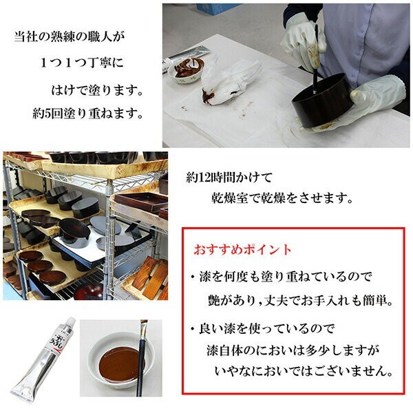 当社では本漆のみ使用しています。(ウレタン塗装はしていません。)
