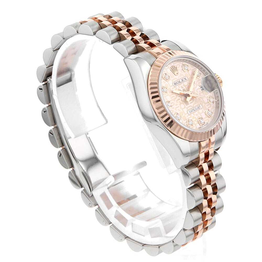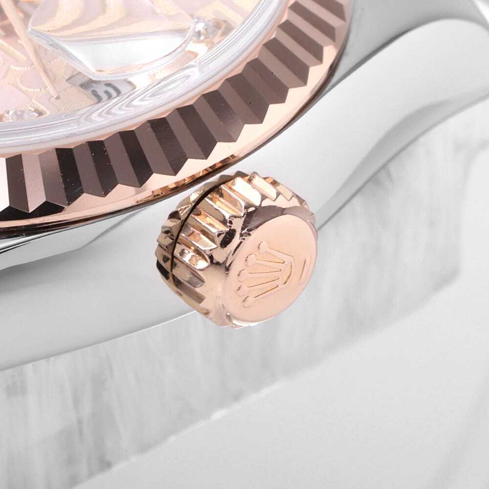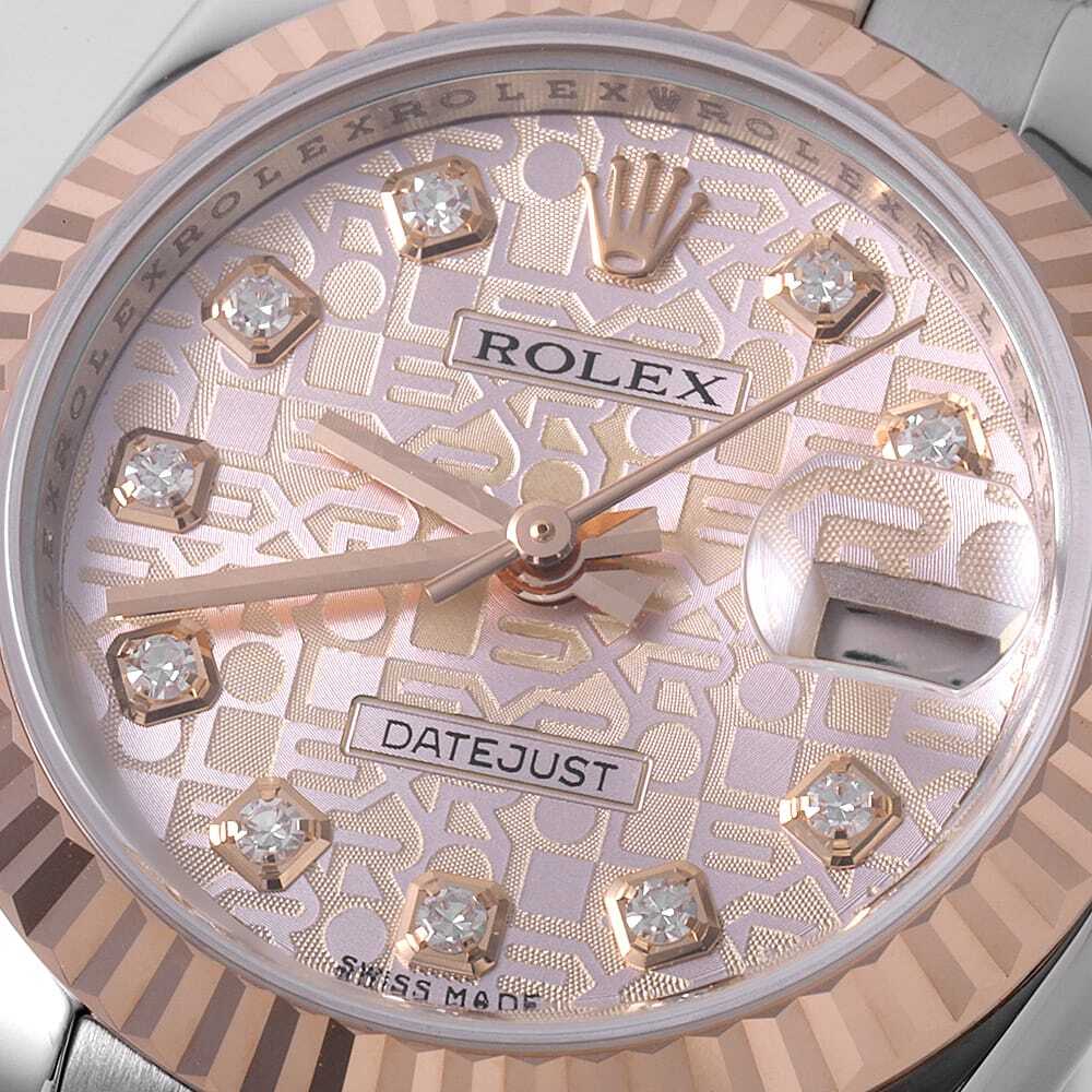 モデル情報 | 1945年に誕生し、今やロレックスの顔とも言える"デイトジャスト"。ロレックスの三大機構(オイスターケース、パーペチュアル機構、デイトジャスト機構)を全て備えたモデルです。エレガンスとクラシカルなデザインで女性の腕元を華やかに彩ります。ダイアル色・ケース素材などの組み合わせは多岐に渡り、非常に多彩なバリエーションが存在するのが最大の魅力です。 |