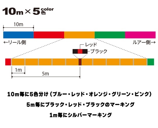 DUEL モンスターゲーム9 タイラバ 200m 0.8号(16LB) 5色分け H4555-5C 9本編み 9braid PE line Made in japan