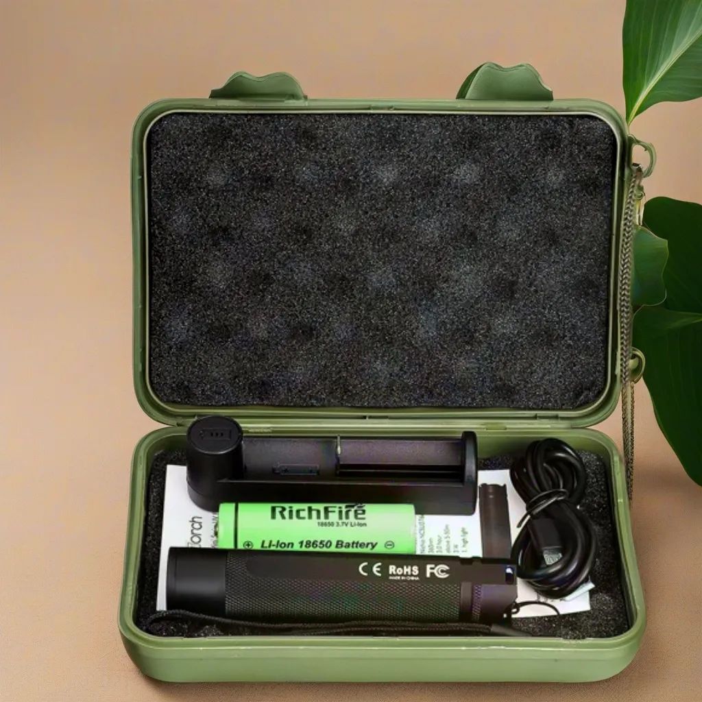 当商品には高容量の18650Liイオン電池と専用のバッテリー充電器が含まれています。これにより、懐中電灯の使用がより便利となり、別にアクセサリーを購入する必要がありません。