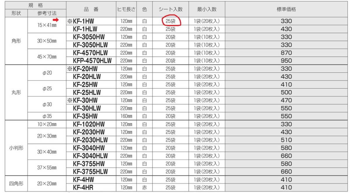 未来工業 ミライ カラーエフ KF-1HW 1シート 500枚