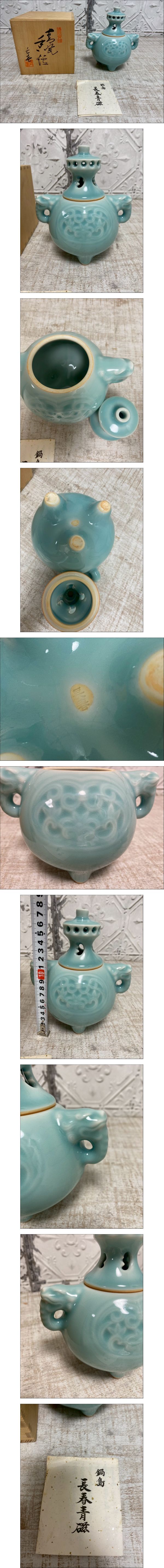 | ★a-92 天然青磁 小笠原 長春 長春陶窯 鍋島青磁 香炉 こうろ 伊万里 木箱 元箱 未使用品 | ||
