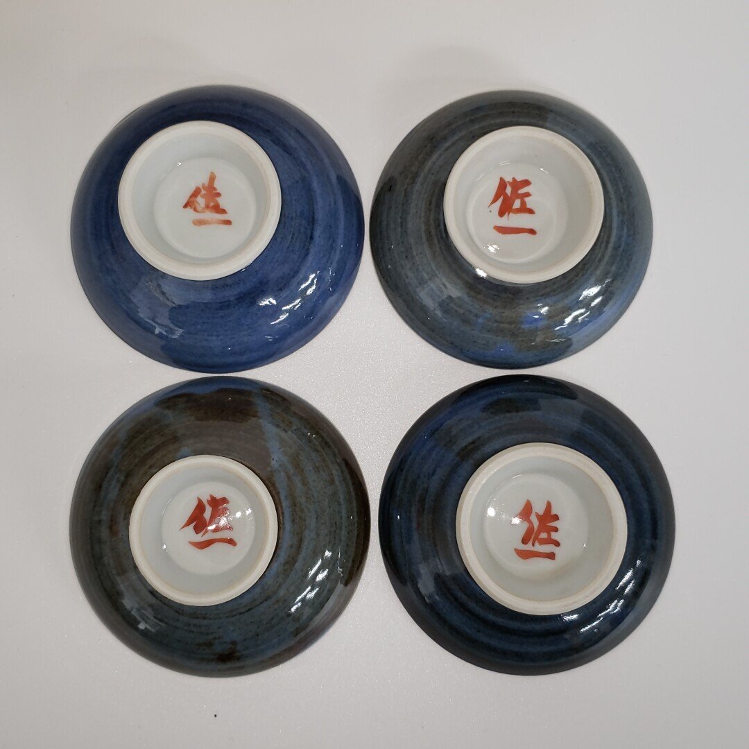松本佐一作の盃4点セットです。それぞれ木箱に入っています。経年による汚れ、擦れがあります。若干大きさにばらつきがあります。