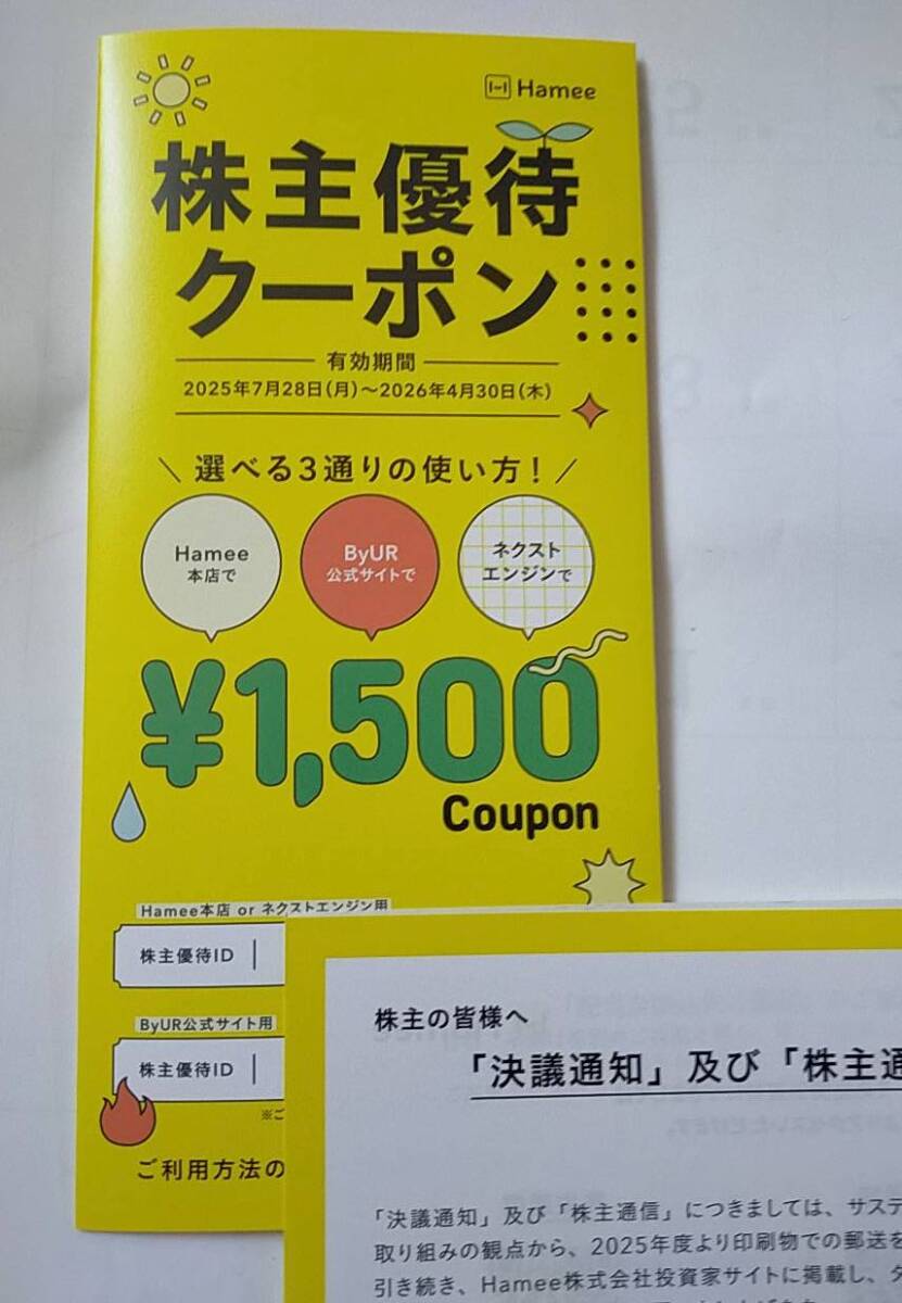 【即決 送料無料】Hamee 株主優待クーポン 1500円分 ネクストエンジン ByUR 2026年4月30日まで コード通知のみ