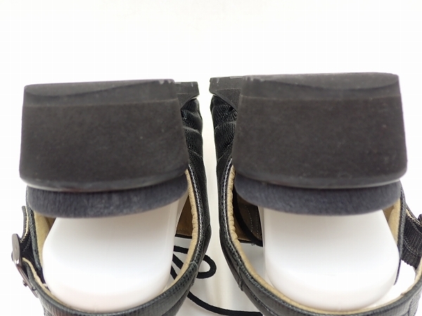 こちらの商品は中古品です。使用感があります。かかとソールの減りが見られます。すりキズが少し見られます。 箱はありません。 ※アウトソールにポリウレタン素材が使われている靴は、使用の有無や頻度に関わらずソール内部で経年劣化が進行している可能性があります。その場合、着用時にソール全体が破損する恐れがあります。 また、アウトソール接着部分の剥がれ、インソールや内部側面素材の剥がれ、ストラップのゴムの劣化、ピンヒール素材の破損などの経年劣化も考えられます。 外観では判断のできない劣化ですので予めご理解の上ご入札下さい。 商品到着後1週間以内に数回の試し履きをお願い致します。試し履き後、商品に問題がある場合は対応させて頂きますので取引メッセージよりご連絡下さい。 | |
