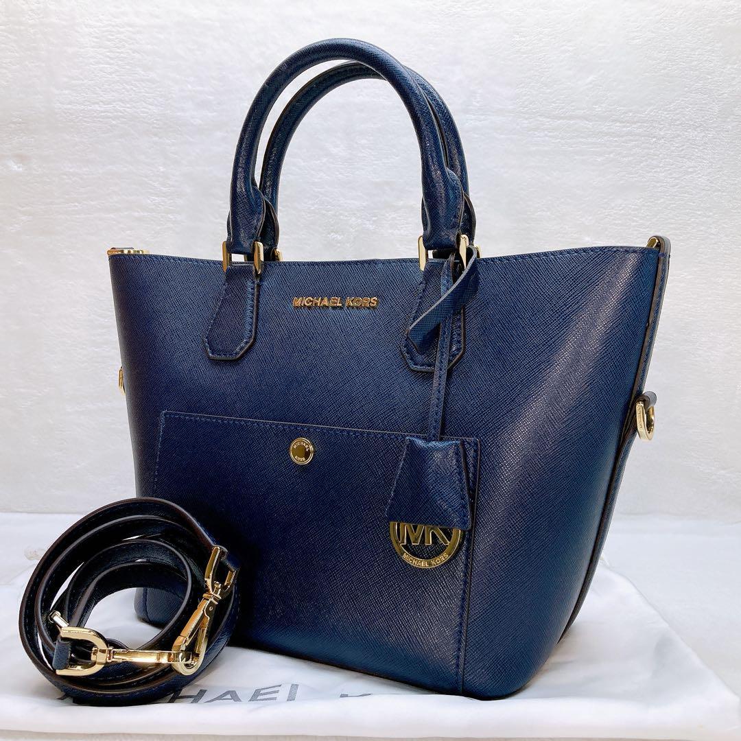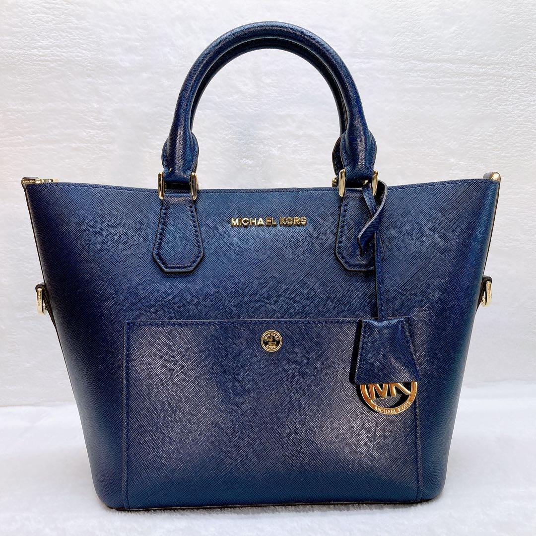 マイケルコース 2wayショルダーバッグ レザー ロゴ ネイビー ロゴ
