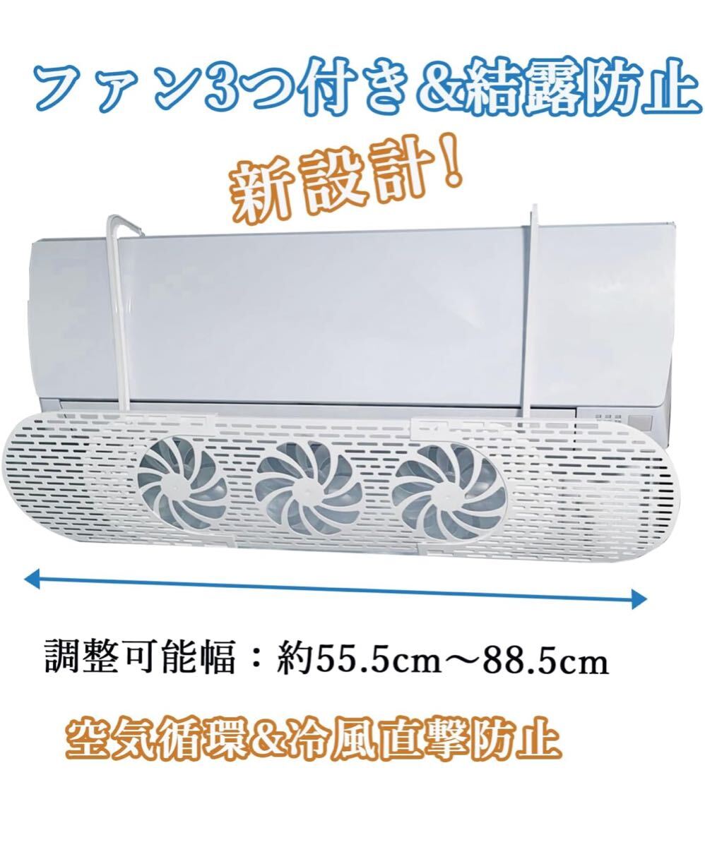 エアコン風よけカバー 空気循環 循環送風 ファン3つ付き 直撃風防止 風向き上下180°調整 オフィス 家庭用 革新的なデザイン 結露防止 直撃風対策 壁掛け 伸縮自在 56~88cm 冷房暖房通用 取り付け簡単風よけ ホワイト