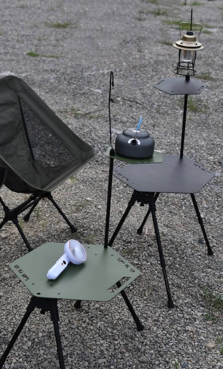 ★こちらはGENERIC OUTDDORのヘキサソロテーブルになります。 ★傷付き難くスタイリッシュなブラックにパウダー塗装を施し、傷への耐性と美しい見た目を実現したテーブルになります。 ★【高さ自由調整・安定設計】 テーブルの脚は自由伸縮調節可能に設計され、34cm~50cmの範囲でお好きな高さで右に回して固定できます。地面の角度に合わせて脚の長さを別々に調整できますので、斜面の地形でも安定的に使え、テーブルの揺れとか心配いりません。キャンプテーブルのスタンドは三脚構造を採用し、重力構造に適合します。 ★【超軽量テーブル】 アルミ合金で作成されたソロキャンプ向けのテーブルです。軽量でサビに強い、シンプルな構造で1.75kgの重さが軽量で持ち運びが楽です。軽量で折りたたんだ後のサイズが小さいため、持ち運びや保管が簡単です。また、数秒でインストールすることができます。すばやく折りたたんで、キャリーハンドルで持ち運びできます。 ★【様々な場所で大活躍】 おりたたみテーブルは屋外食事や室内用簡易デスク、一時的な物置など、簡易的に欲しい場所にテーブルが作れて活躍!使い道が多い。高さも変えられ高・低どちらも重宝!この アルミロールテーブルはに孔があり、ランタンスタンドを取り付けることができます。野外でのキャンプやバーベキューに最適です。 ★【折りたたみ式】 アウトドアテーブルが3本のスタンドと1枚の天板を含み、おりたたみ式で収納袋に入れて持ち運びやすいです。複雑なデザインなし、組み立ても楽々です。 ★【ぐらつきについて】 こちらの折りたたみテーブルは軽量化を重視し、高さも調節可能。高さを調節する際の空気の抵抗を小さくするために、連結部に隙間がありますので、少しぐらつきがあり、正常の使用に影響はありません。 ★当店では他にも、各種ラック用拡張アイテムや多数のアウトドア用品をご用意しております。是非ご覧いいただきご検討お願いいたします。 商品詳細 ブランド:GENERIC OUTDDOR サイズ:大きなテーブル高さ約34-50cm 縦45cm 横40.5cm :小さなテーブル縦約23.5cm 横20.5cm 収納サイズ:縦約44cm 横48.5cm 重量:1.75kg 耐荷重:18kg 材質:アルミニウム合金 カラー:サンドブラック(テーブル写真数点に字体がありますが実際はブラック一色の無地です) セット内容:テーブル大1点・小さなテーブル1点・ポール1本・ランタンポール1本。・収納ケース1点 | |||
