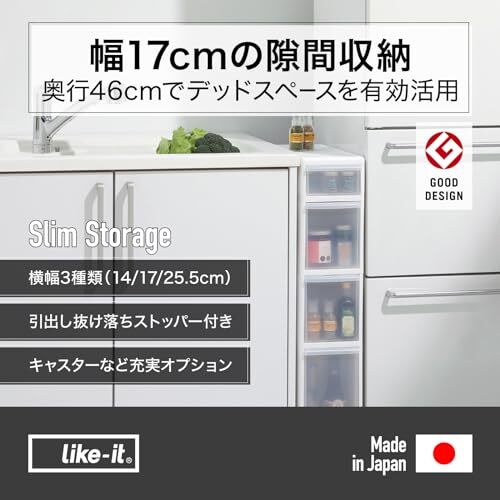 全体がきれいなホワイトの引き出しストッカー。 中身が透けて見えないので見た目すっきり。 キッチンやサニタリーはもちろん、リビングでも使える「隠す収納」アイテム。