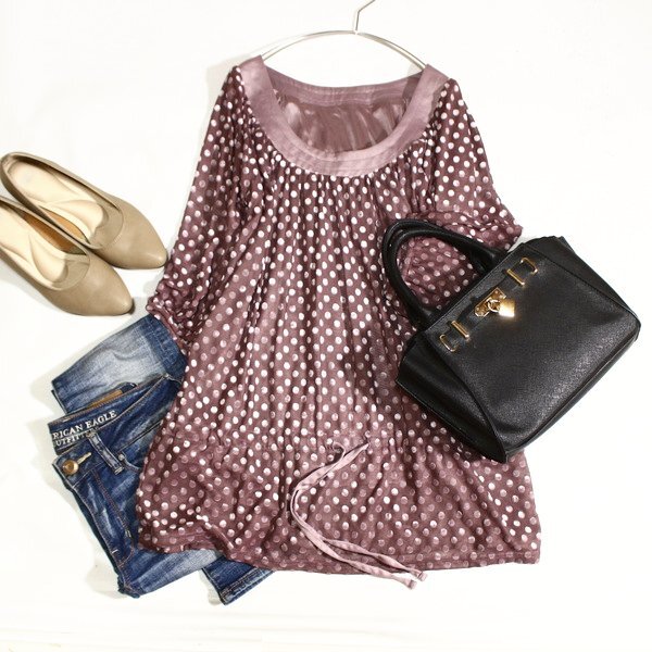 可愛いフロッキードット柄のチュールストレッチカットソーです。