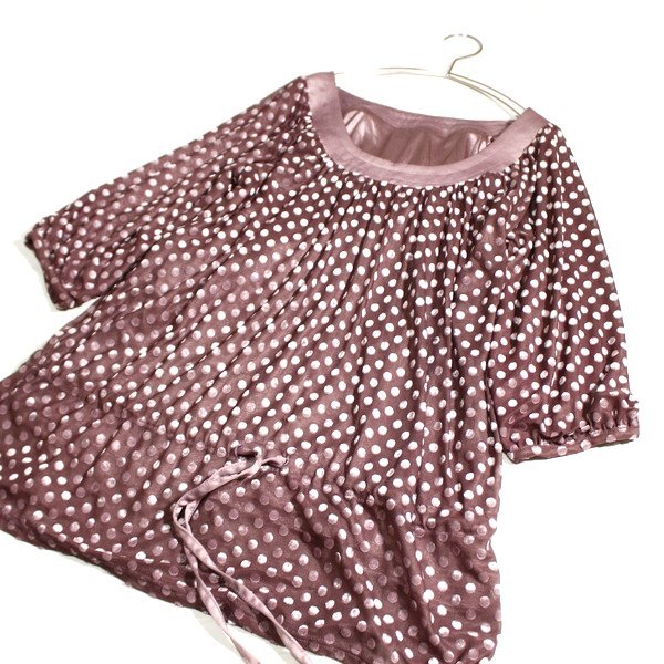 美品 grove グローブ 可愛い フロッキードット柄 裏地付き 透けチュール ストレッチ カットソー M 春 秋 25B08