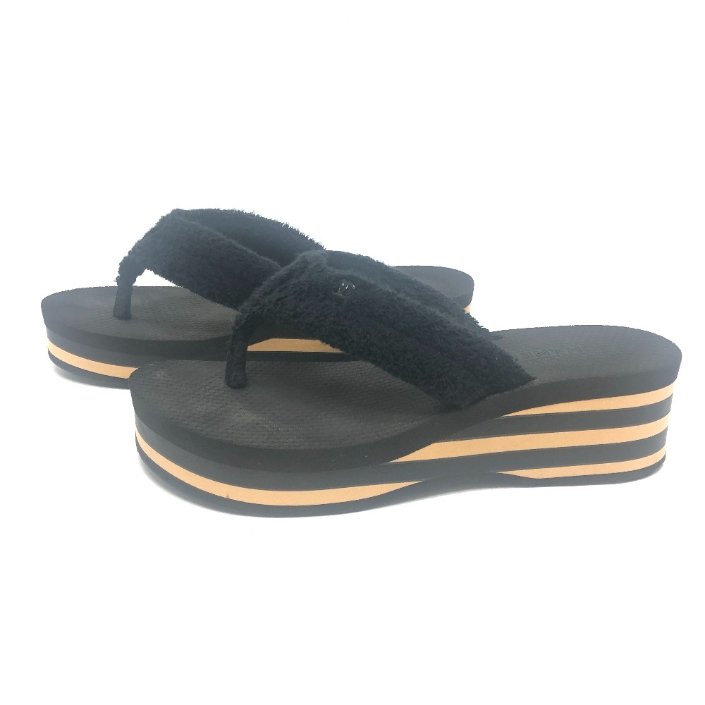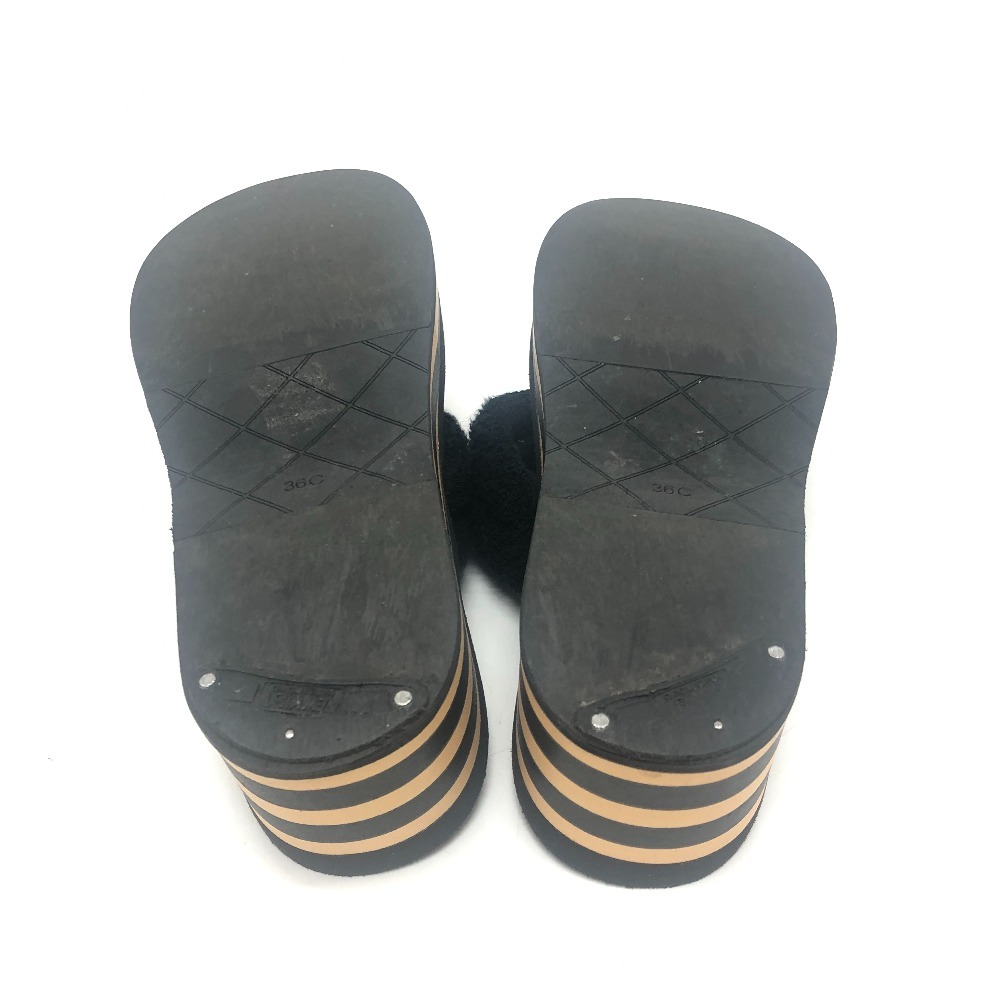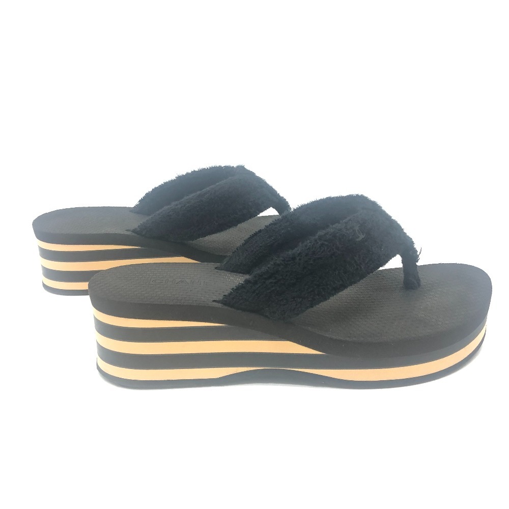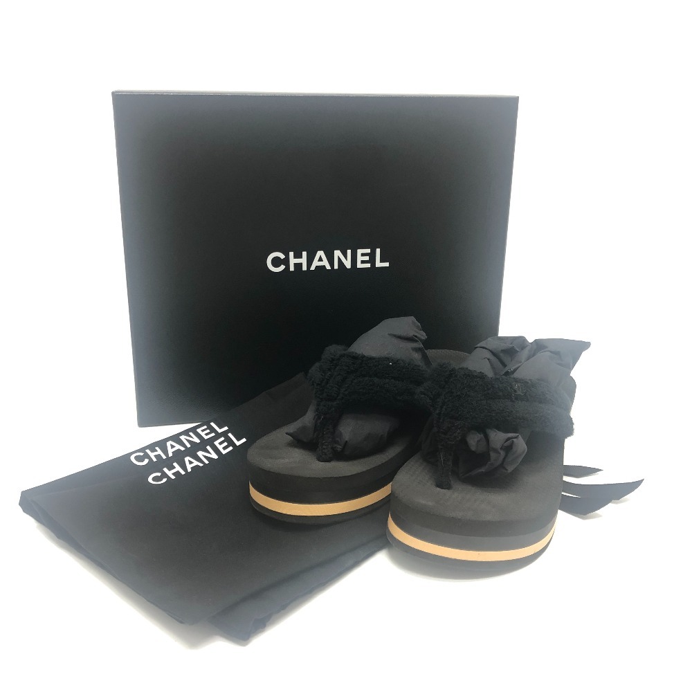 CHANEL シャネル G46202 ココマーク ボーダー ビーチ サンダル 靴 サンダル ブラック レディース【中古】