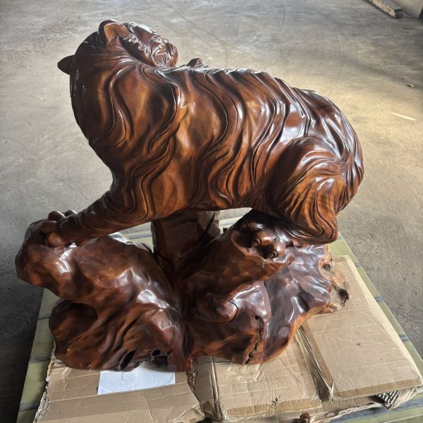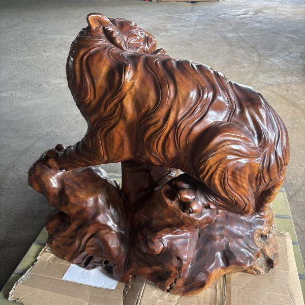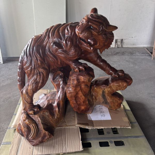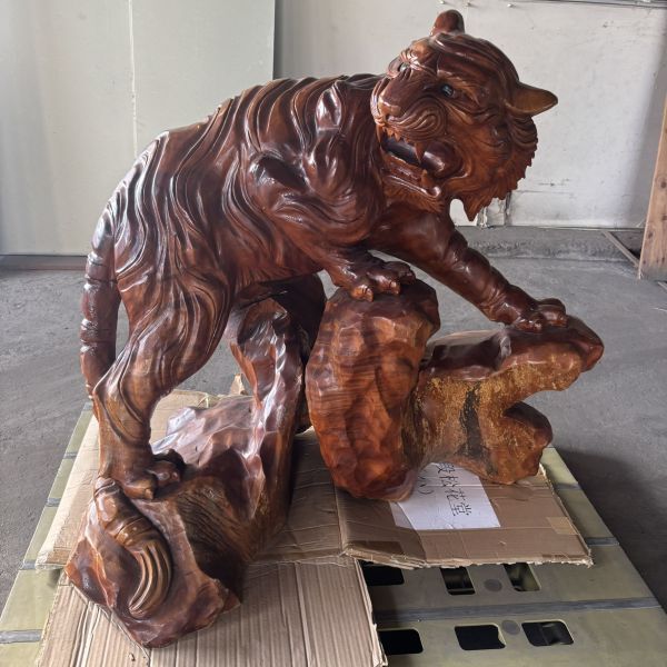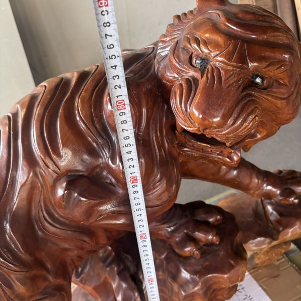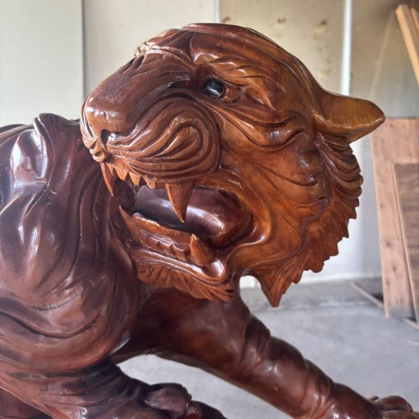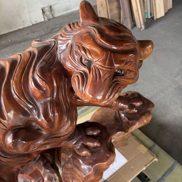 見る者を圧倒する、生命感あふれる木彫りの虎の置物です。