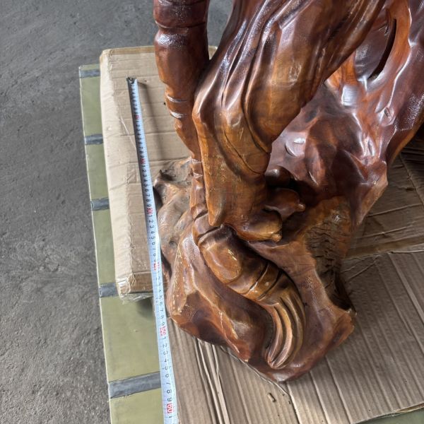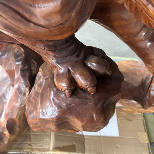 経年による僅かなスレや小傷、木材固有の乾燥による微細なヒビ(特に台座部分)は見られますが、作品の持つ重厚な雰囲気や美術的価値を損なうものではございません。むしろ、時代を経てきたからこその風格と味わいの一部と捉えております。