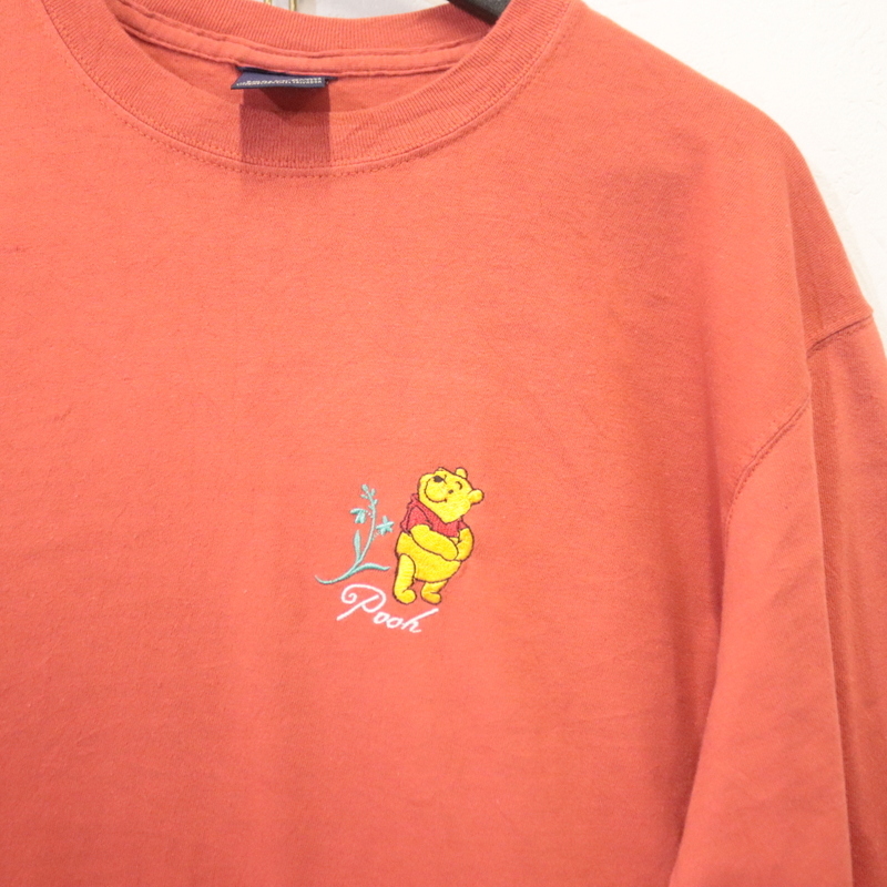 O856 2000年代製 Pooh 半袖Tシャツ■00s 表記Sサイズ オレンジ プーさん 刺繍 アメカジ ストリート 古着 激安 古着卸 希少 ヴィンテージ