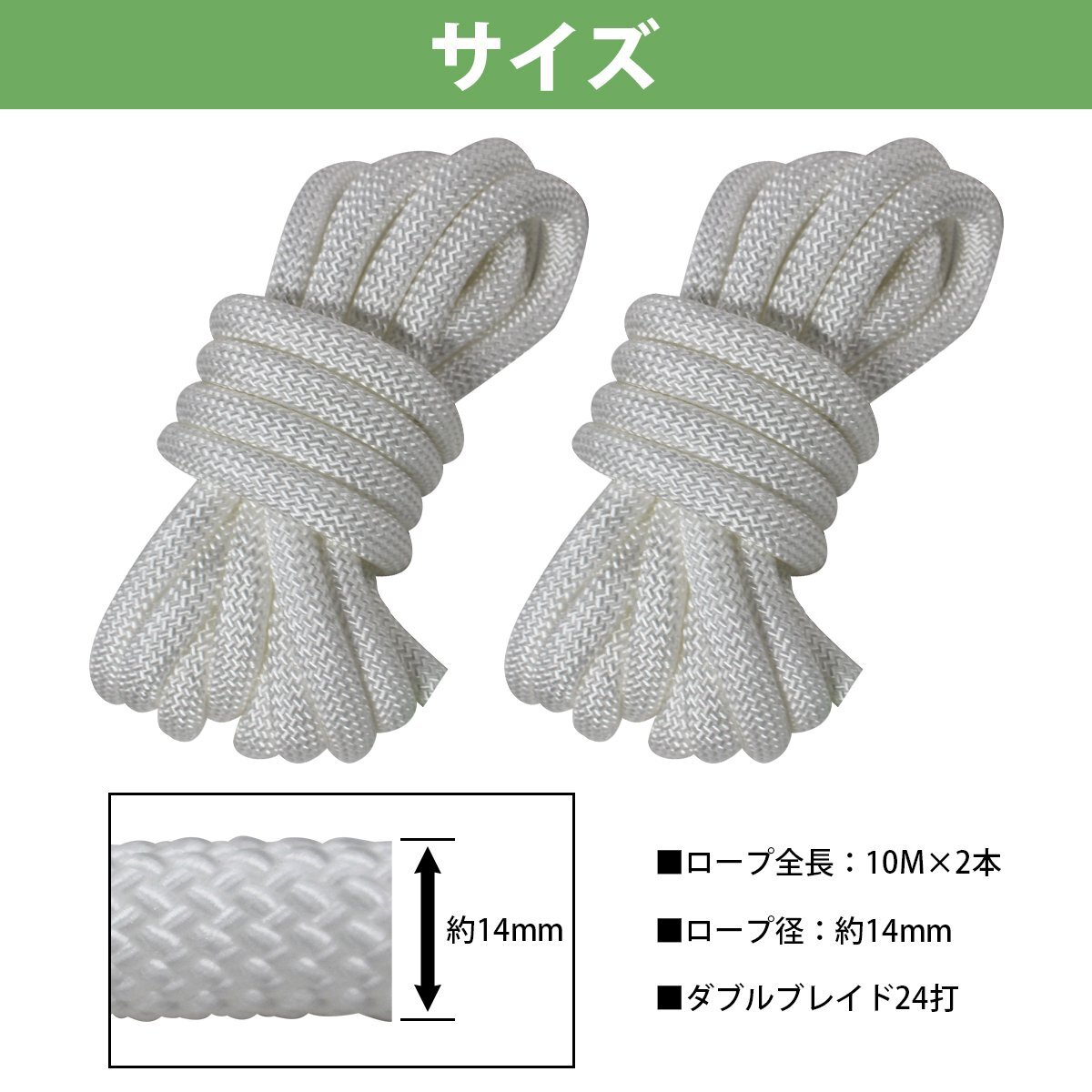 24打 14mm 10m 2本セット 計20m 係留ロープ フェンダーロープ ダブルブレイド 白/ホワイト マリン ロープ 船 係船 14ミリ