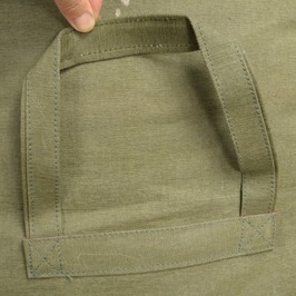 素材は厚手のキャンバス生地を使用しており、荷物が重くなっても頼れる丈夫な作り。