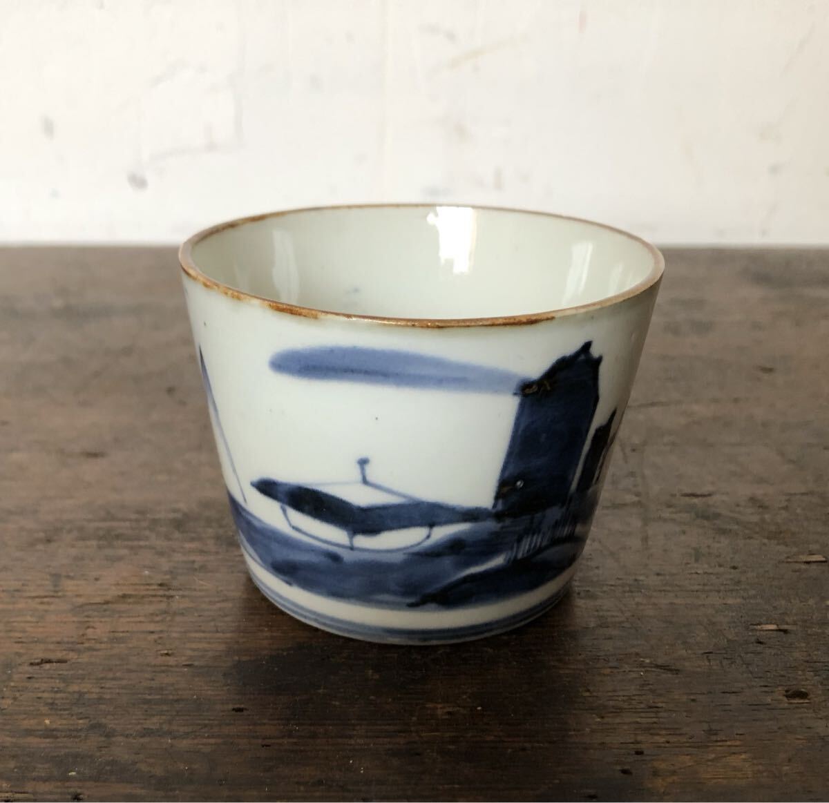 商品名 : 古伊万里 蕎麦猪口/ 染付/風景図/ぐい呑み/向付/山水/蛇の目高台/ 骨董/ 時代物