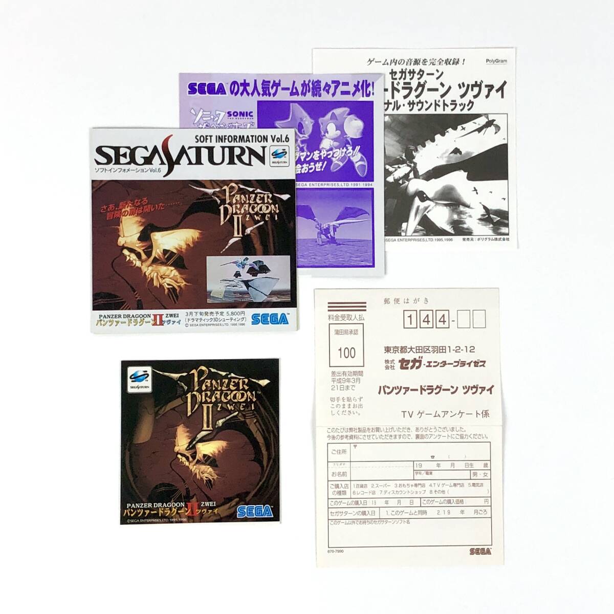 【送料無料】 セガサターン パンツァードラグーン ツヴァイ 帯・ステッカー・チラシ・ハガキ付き セガ Sega Saturn Panzer Dragoon Zwei