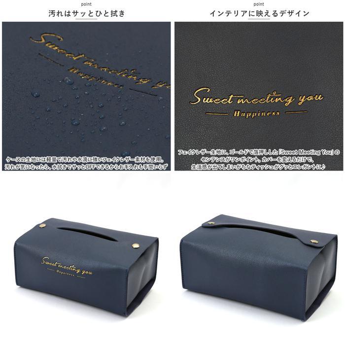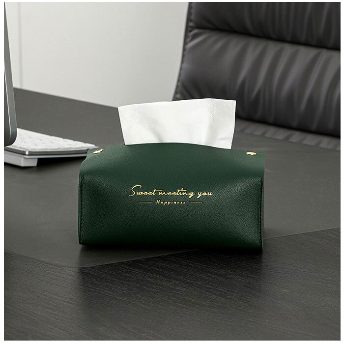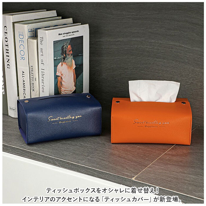 商品説明 | ・・ティッシュボックスをオシャレに着せ替え!インテリアのアクセントになる「ティッシュカバー」が新登場。 ・【小ぶりなボックスフォルム】 ・折りたたまれた状態のカバーを広げて側面の生地を立てたら、パチンッとスナップボタンを留めるだけ!ちょこんと小ぶりなボックスフォルムが可愛い♪ ・【詰め替え作業が楽ちん】 ・開口部は開け閉めがスムーズにできるスナップボタンタイプ。上からティッシュペーパーのリフィルをポンッと収納するだけで、詰め替え作業が完了!(※ボックスタイプのティッシュはそのまま収納できません。箱から詰め替えてご使用になるか、ソフトパックタイプのティッシュのご利用をお勧めします。) ・【手軽に置けて、省スペース】 ・ドレッサーの上や洗面化粧台キャビネットの中、自動車のダッシュボードなど、手狭な場所にも気軽におけるコンパクトサイズ。 ・【汚れはサッとひと拭き】 ・ケースの生地には軽量で汚れや水滴に強いフェイクレザー素材を使用。汚れが気になったら、水拭きでサッとOFFできるからお手入れも手間いらず。 ・【インテリアに映えるデザイン】 ・カラフルなフェイクレザー生地に、ゴールドで箔押しした「Sweet Meeting You」のセンテンスがワンポイント。カバーを変えるだけで、生活感が出てしまいがちなティッシュがグッとエレガントに♪ |