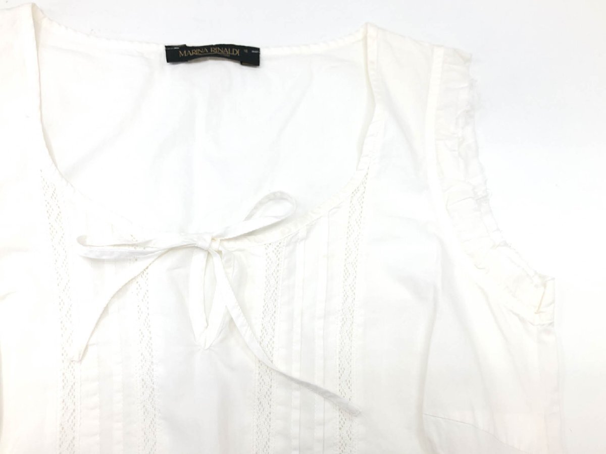 美品【マリナリナルディ MARINA RINALDI】 リボン フリルノースリーブブラウス (レディース) size15 ホワイト MRM61 1216206V ◇33LK2486◇