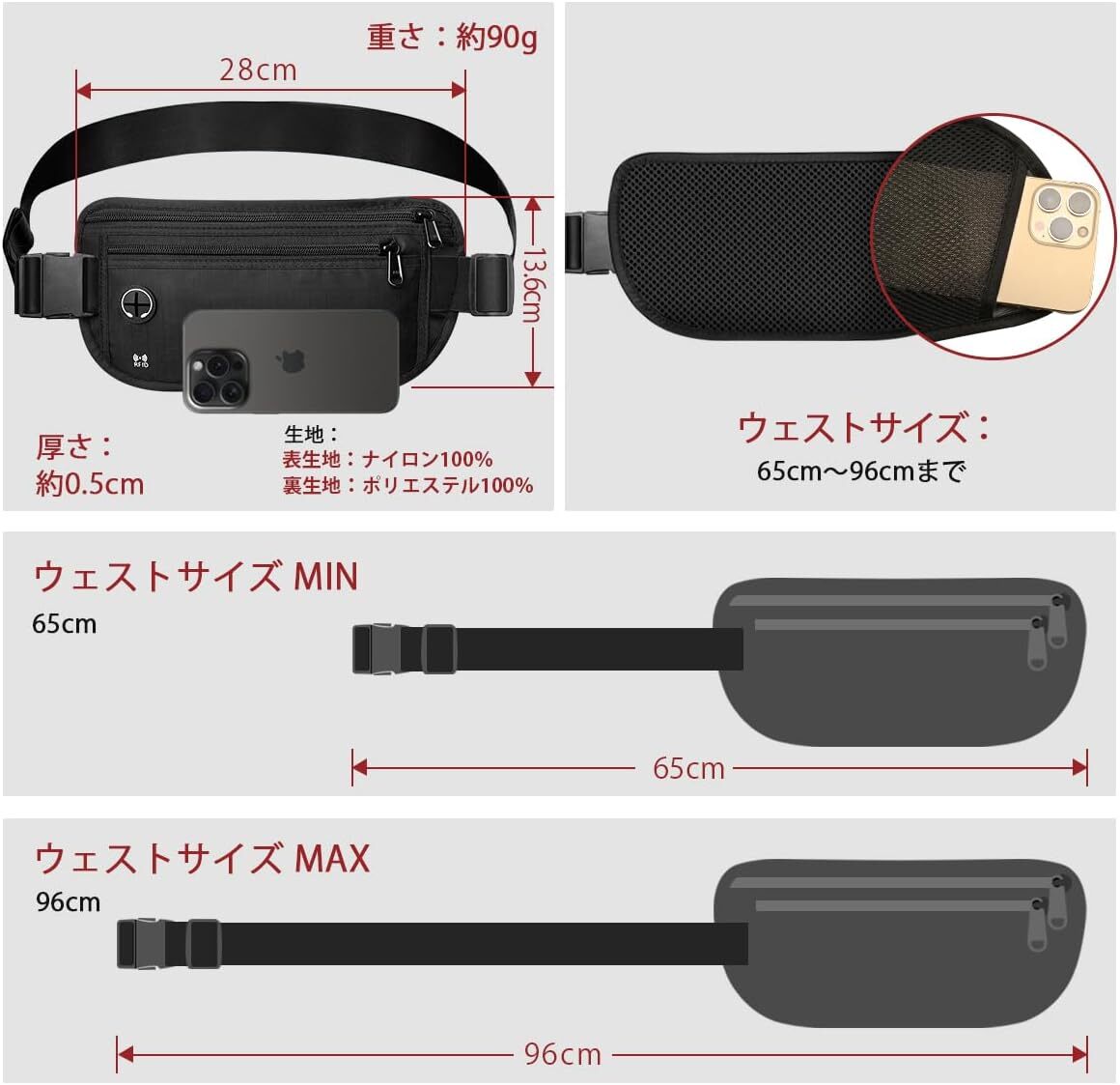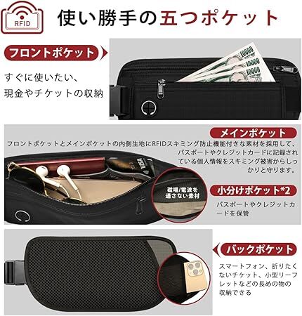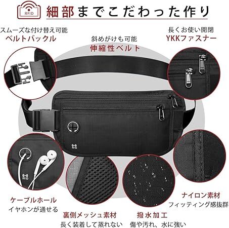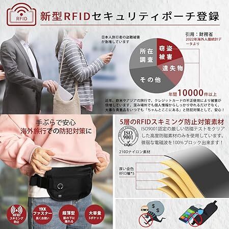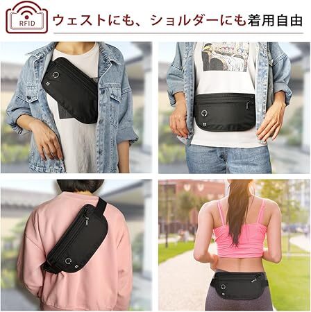 Amazon | セキュリティポーチ 超軽量 超薄型 隠し シークレットポーチ ウエストバッグ 多機能 パスポートケース スキミング防止 レディース メンズ RFID 盗難防止 隠せる スリバッグ 斜めがけ 海外 旅行 マネーベルト 貴重品入れ 腰ポーチ 便利グッズ 防犯グッズ