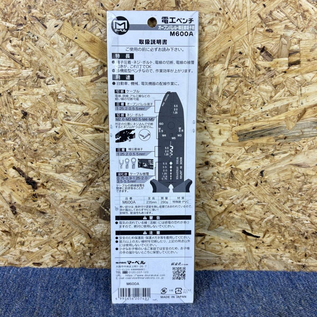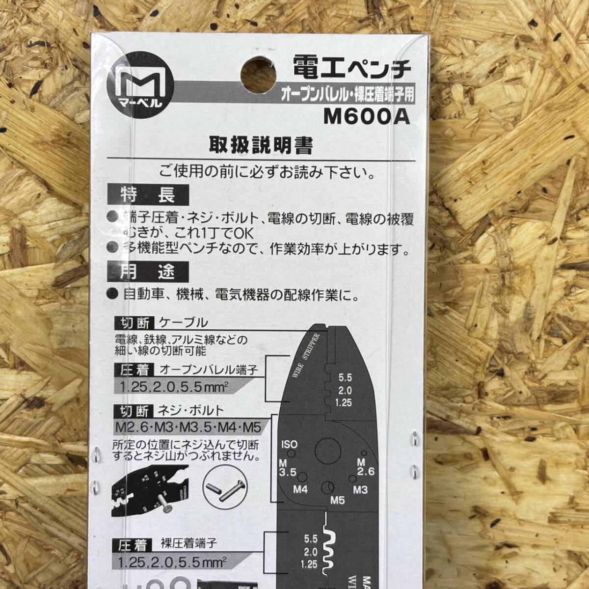【新品未使用品】MARVEL マーベル 電工ペンチ M600A オープンバレル・裸圧着端子用 圧着工具 電工 ハンドツール A84