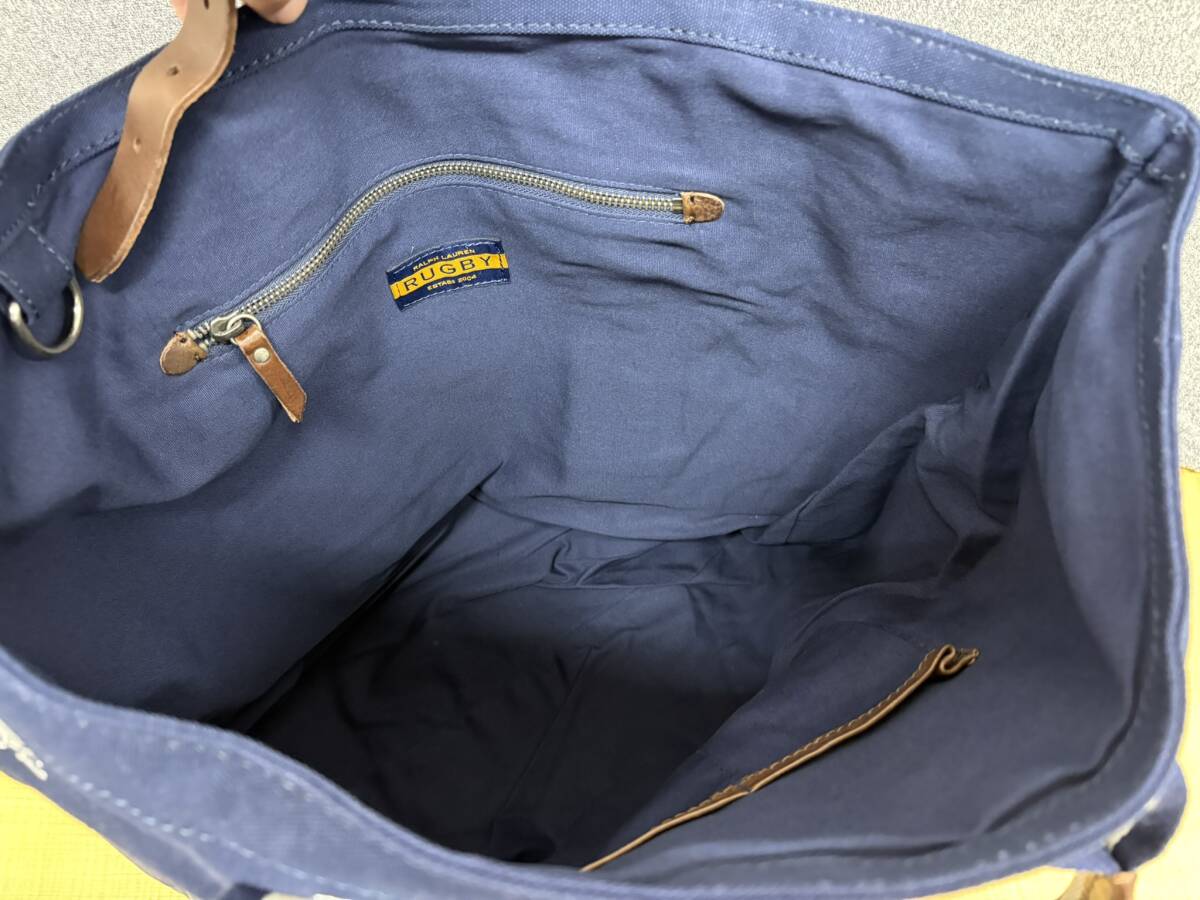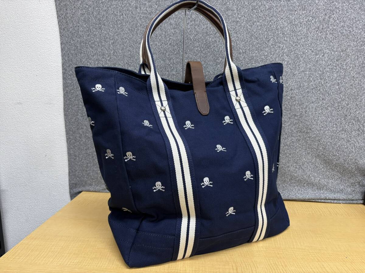 デッドストック★ラルフローレンラグビーRALPH LAUREN RUGBYレザーハンドルキャンバススカルトートバッグ★ネイビー★A1401633B