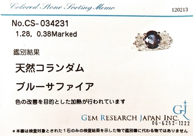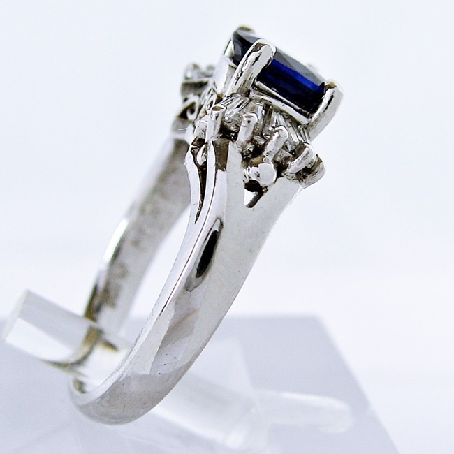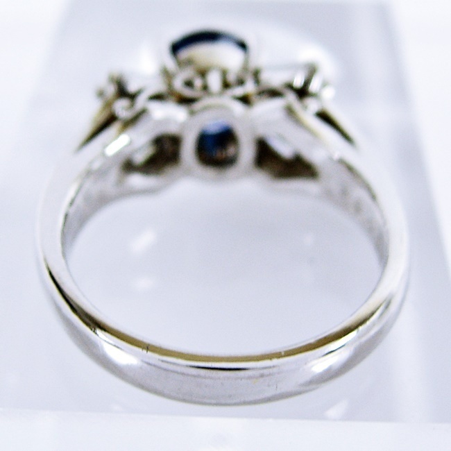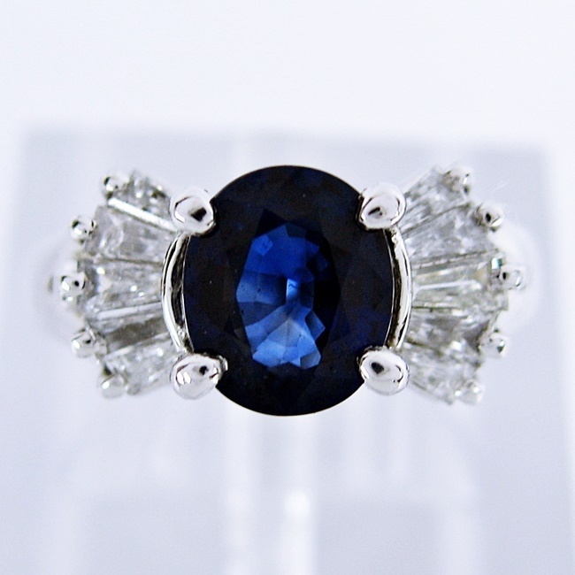 * Pt900 * サファイア:1.28ct * サファイアのサイズ:6.9mmx5.9mm * ダイヤ:0.38ct * デザイン部大きさ:縦7.3mmx14.7mm * 指からの立上り:7ミリ * サイズ:8号 * 重さ:7.9g * ランク:A+ (∞ RS RD PR) s21116