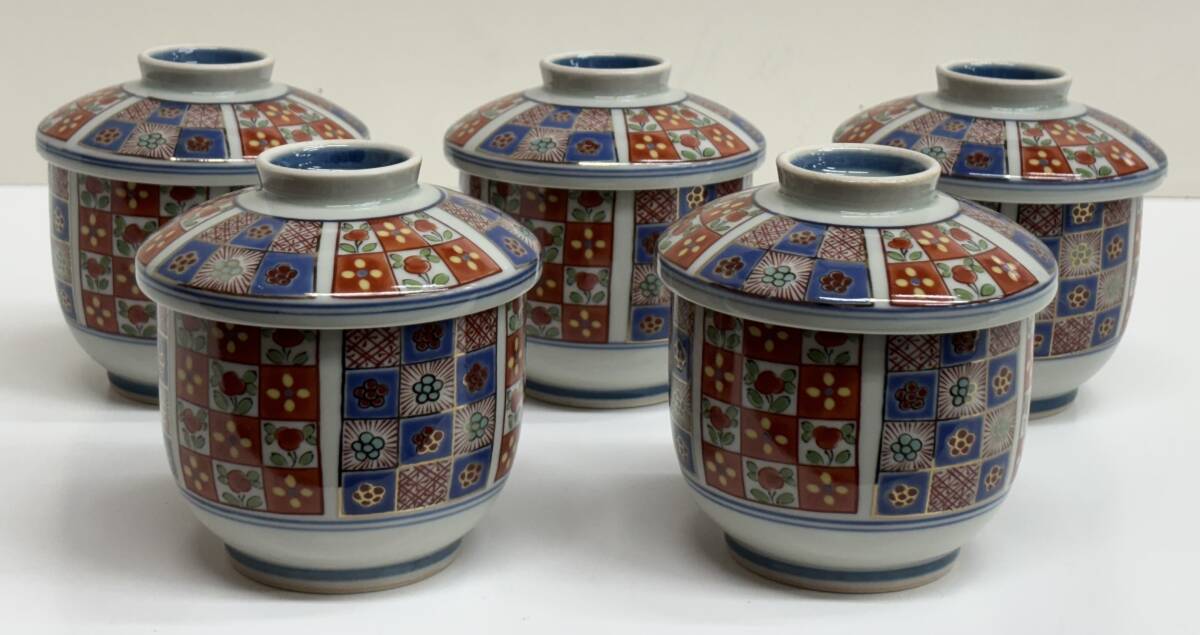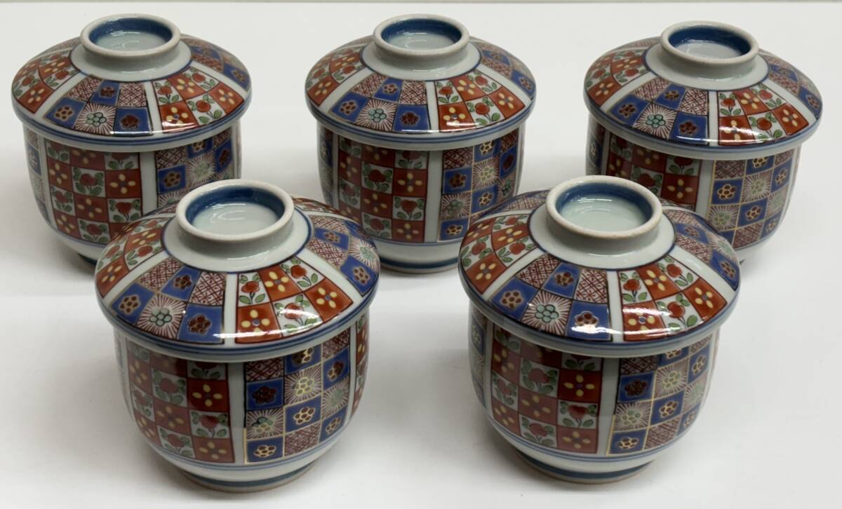 ★未使用品★ 有田焼 彩窯 茶碗蒸し椀 5客揃い 金彩 茶碗蒸し 器 5客セット 蓋茶碗 茶器 和食器 食器 陶器 陶磁器