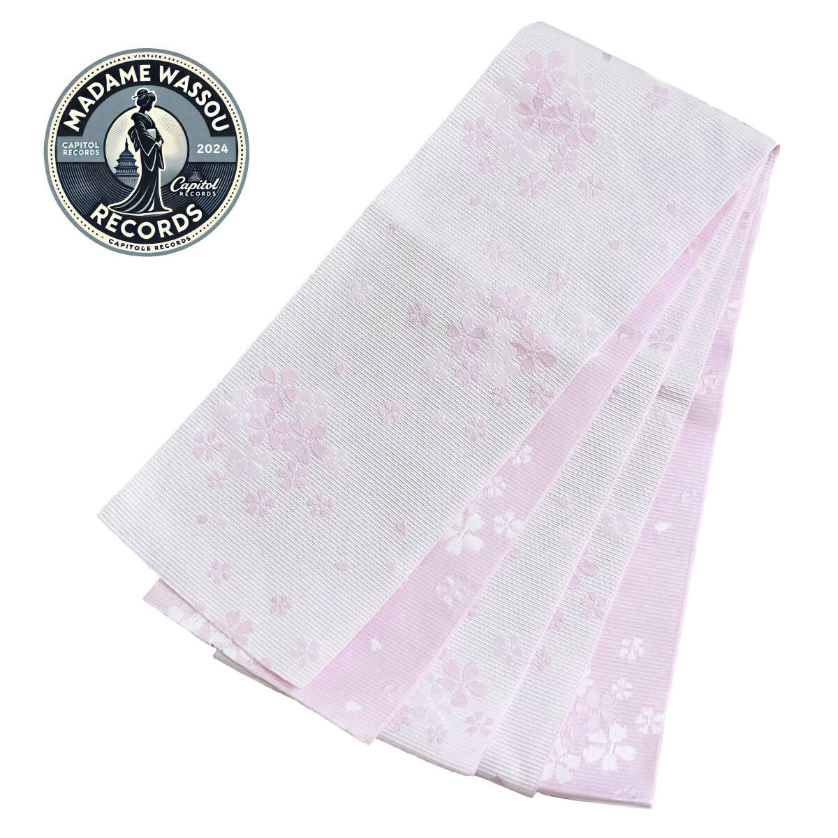 半幅帯 半巾帯 全通柄 洗える 桜 桃色 未使用 カジュアル ポリエステル 仕立て上がり MWR-No.239 21082025 マダム 和装