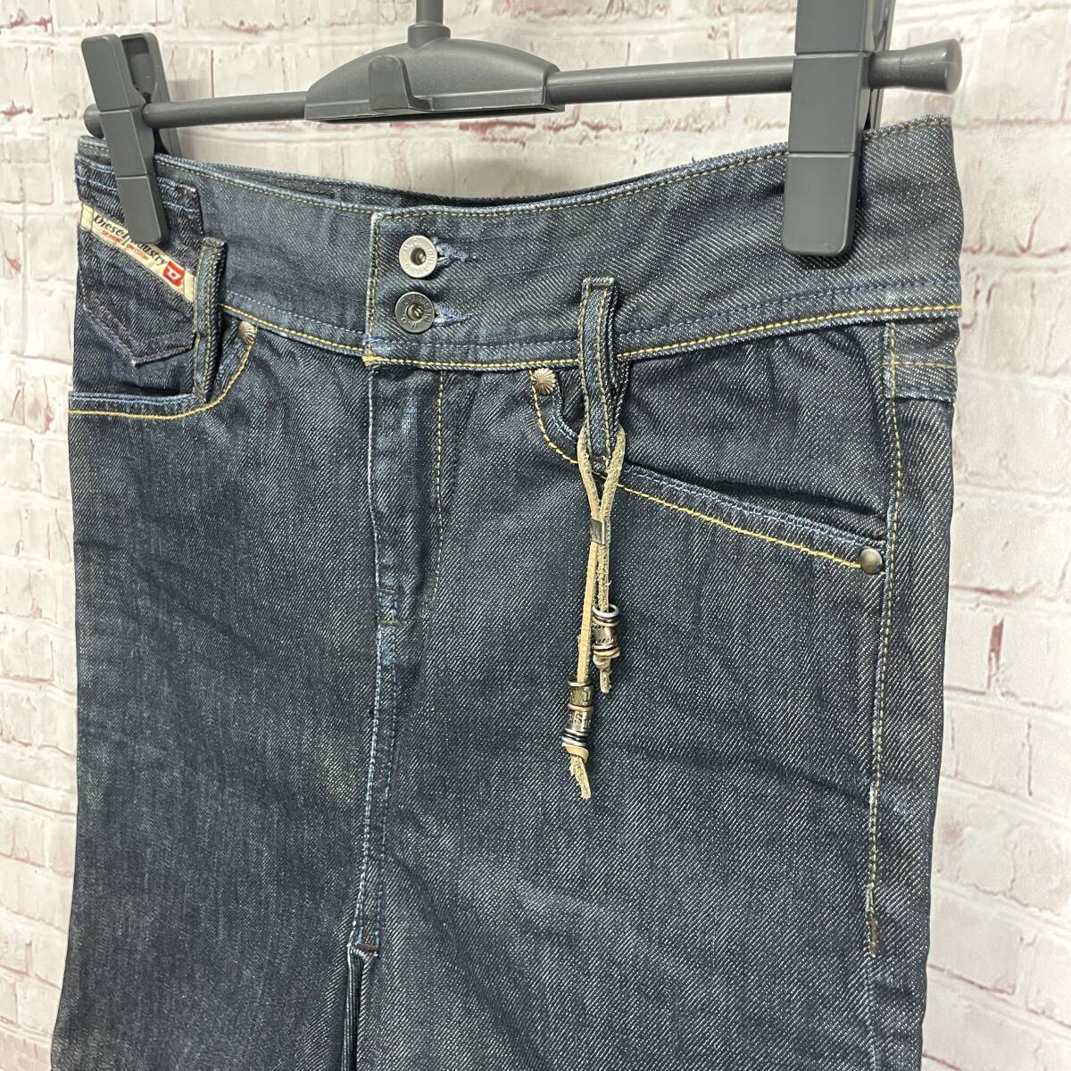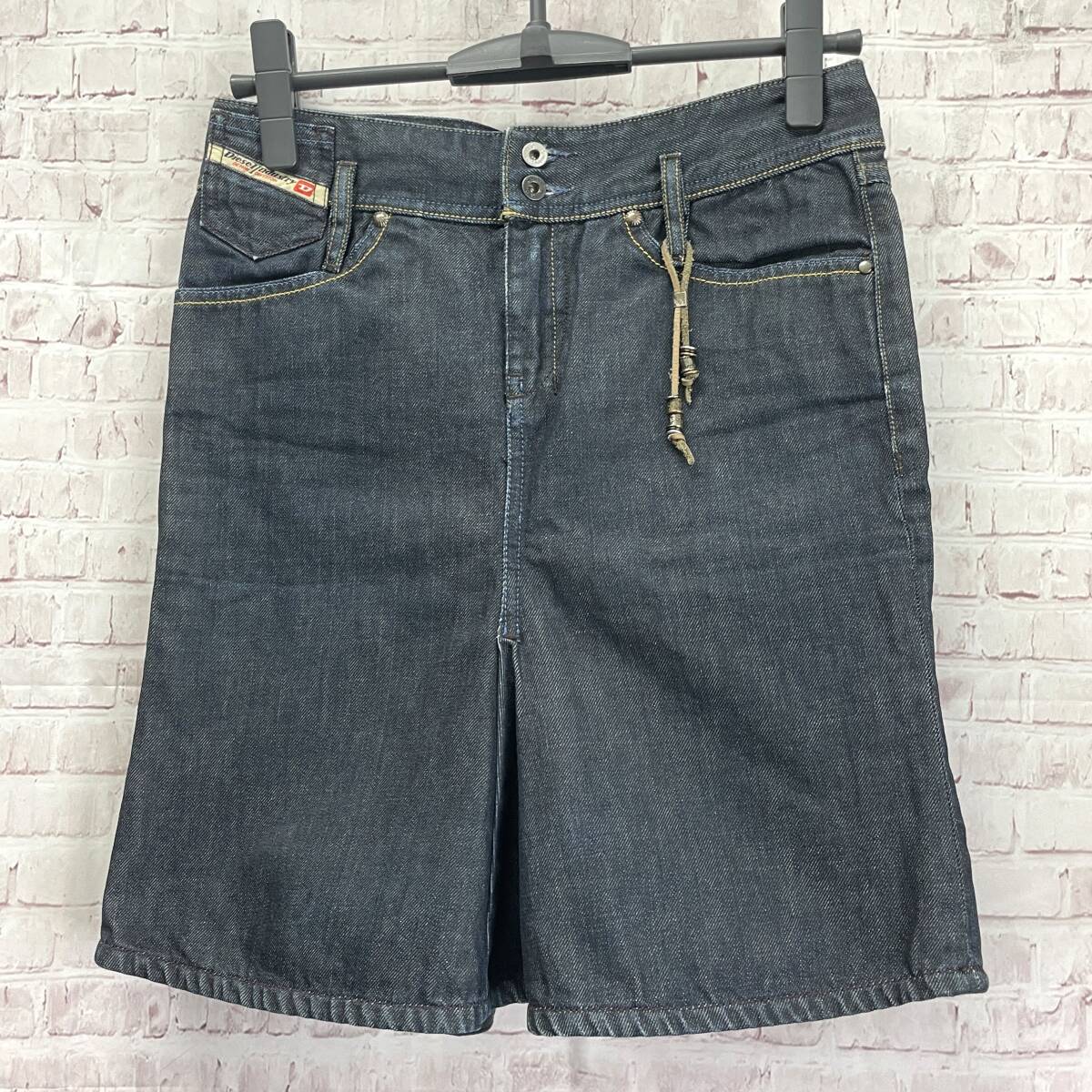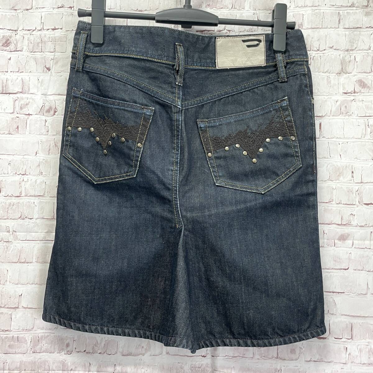 DIESEL ディーゼル デニム スカート フロントスリット スタッズ 刺繍 ストラップチャーム付き ステッチカラフル 00ECALA6001