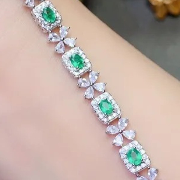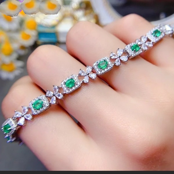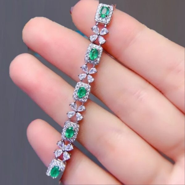 豪華な天然エメラルドブレスレット、高級レディースジュエリー、天然宝石、シルバー925